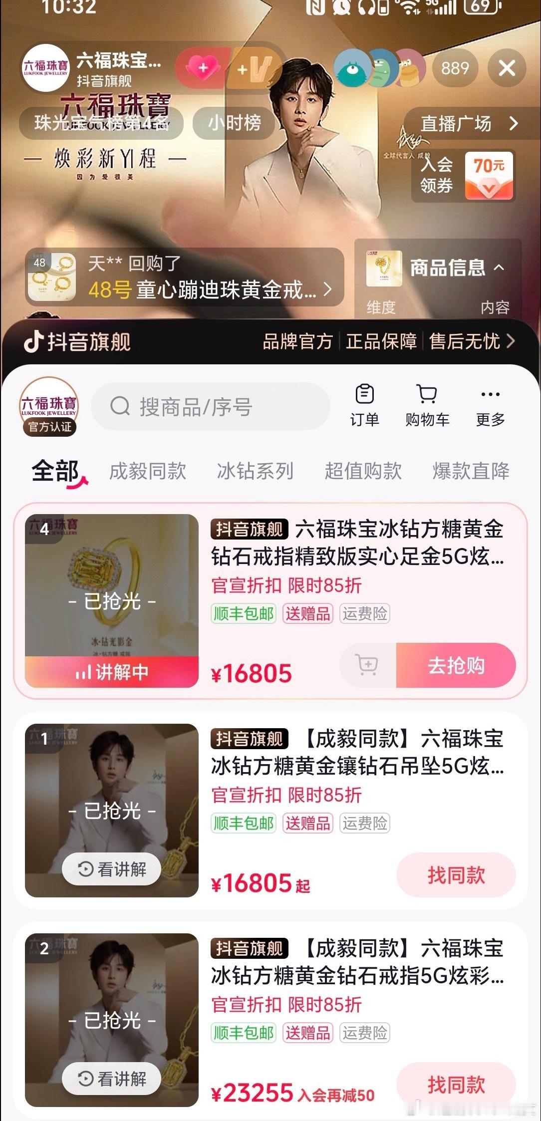 成毅六福珠宝全球代言人在六福珠宝35周年官宣续约,刚官宣新品直接买空,iejj手搓空瓶的同时六福也买空了,活人多是这样。成毅不愧财顶➕大福星