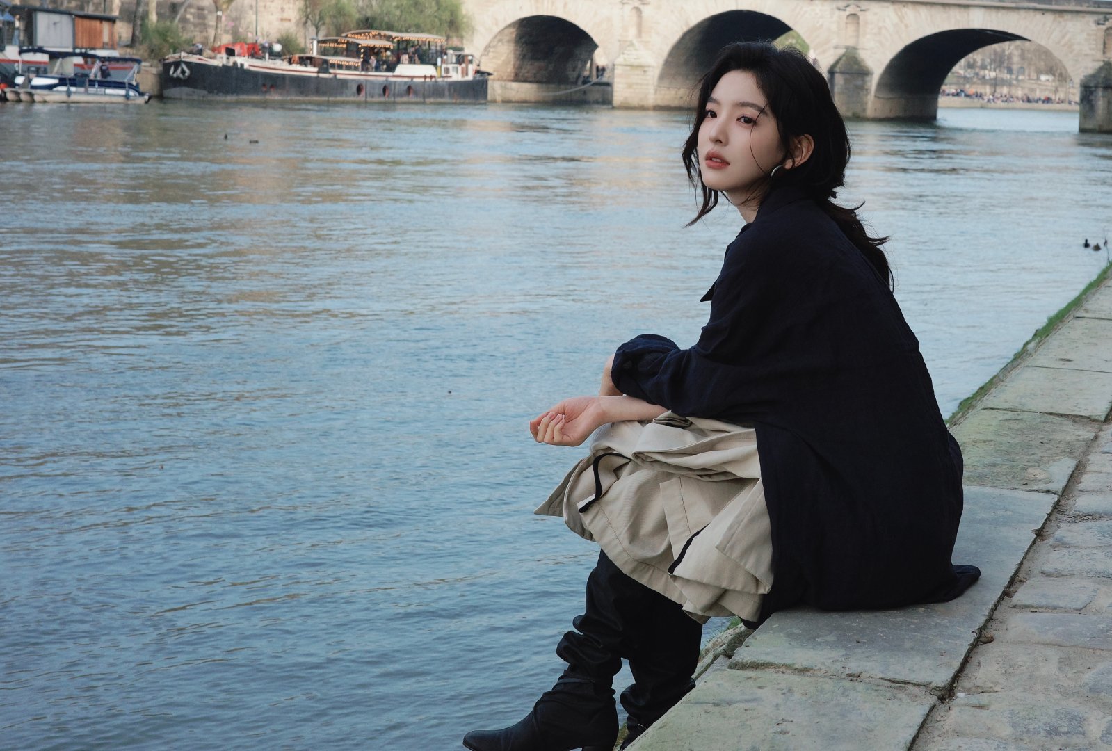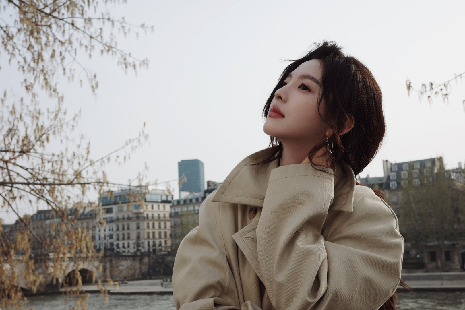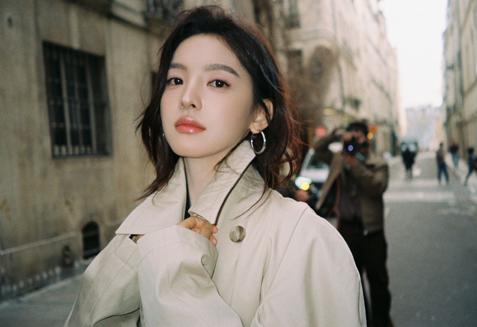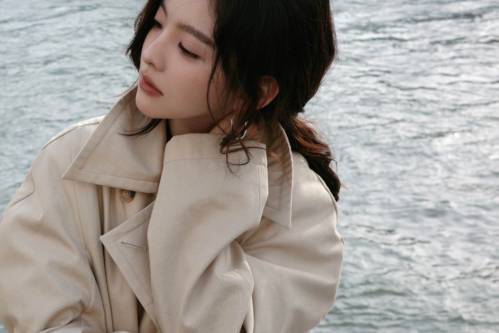 章若楠用脚步记录时间 章若楠用脚步记录时间 米色风衣随意扎发慵懒优雅,的笑容比
