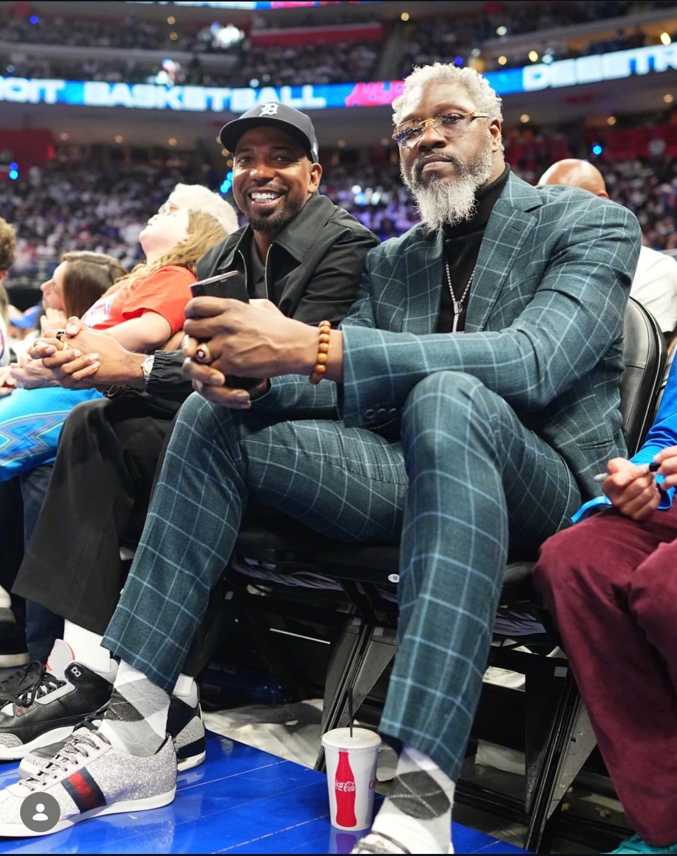 汉密尔顿和大本今天在活塞主场看球,48岁的汉密尔顿和51岁的大本站一块,相信没几个人会认为他俩是同龄人。