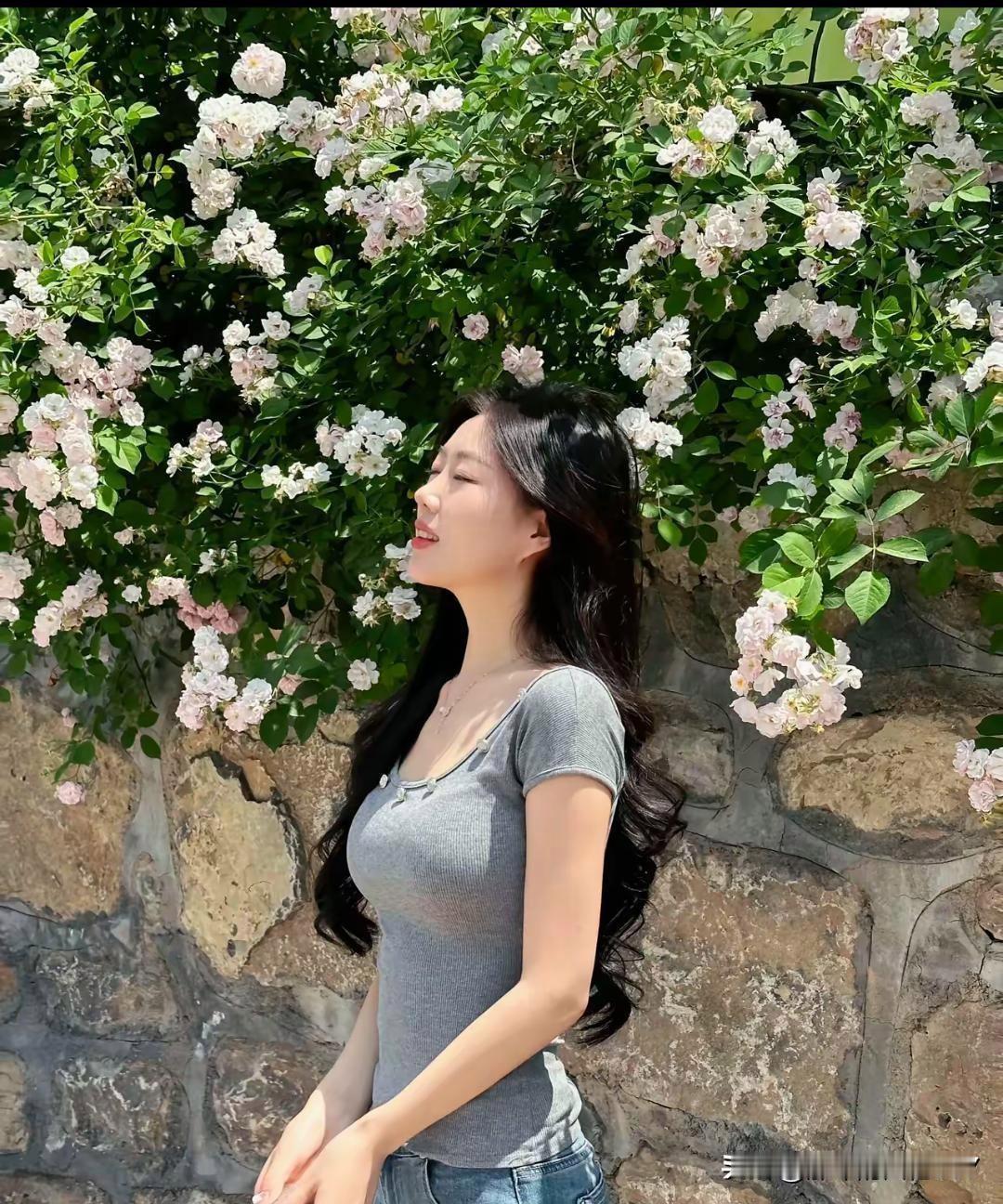 花海中的甜美自拍,阳光下的清新时光治愈花朵自拍 花海少女照