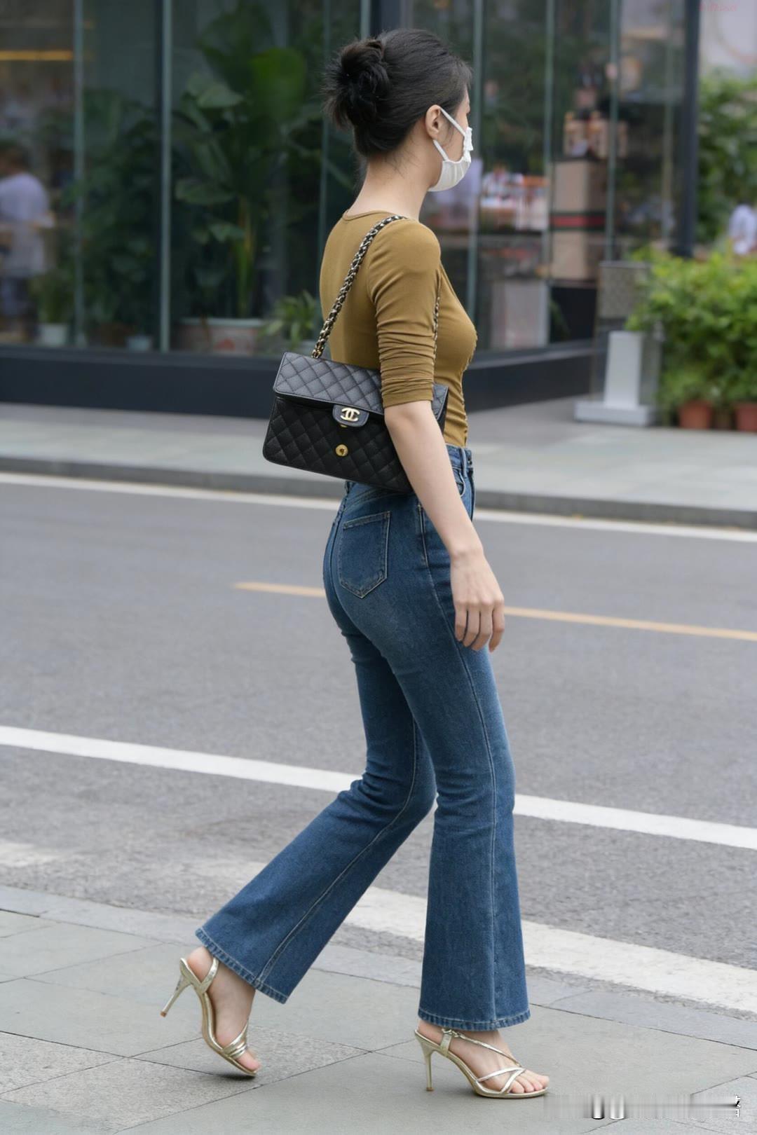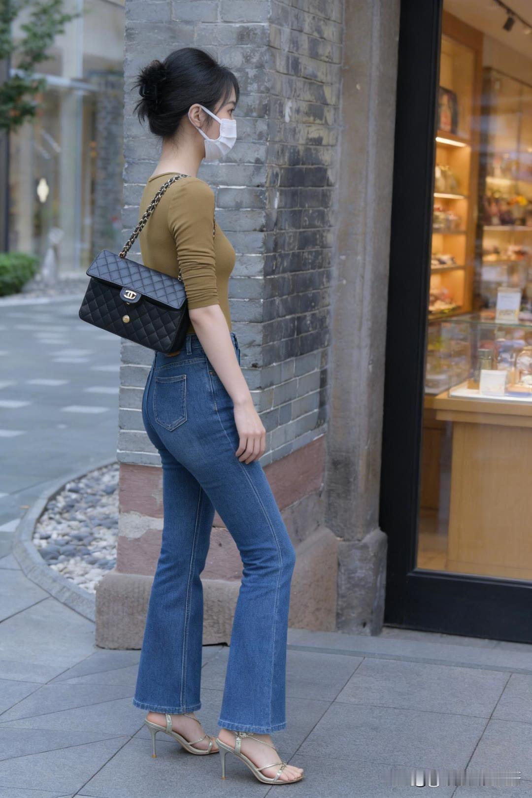 搭配时,千万别用运动鞋配牛仔裤,很土气。像上海潮人那样,选尖头麂皮咖啡高跟鞋,跟高7cm,搭配牛仔裤,瞬间提升气质,尽显女性魅力。