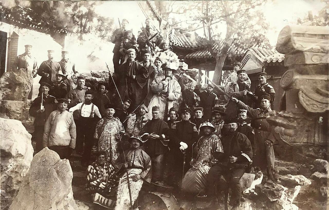 1900年,攻陷北京后的八国联军德军部队,于京城皇家园林内,换上了劫掠而来的清代衣衫,肆意cos扮演。