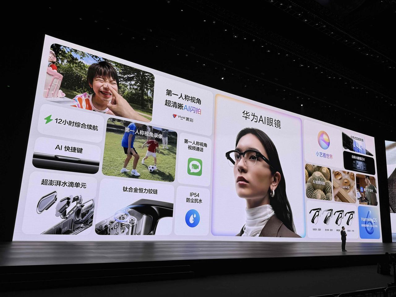 华为AI眼镜有4款设计,两款半款,一款全款光学镜,一款全款太阳镜,镜架仅重35.5克,镜腿薄至6.25毫米,综合续航达12小时。
