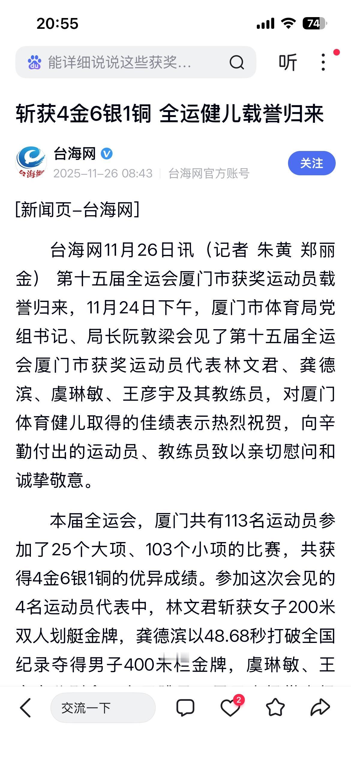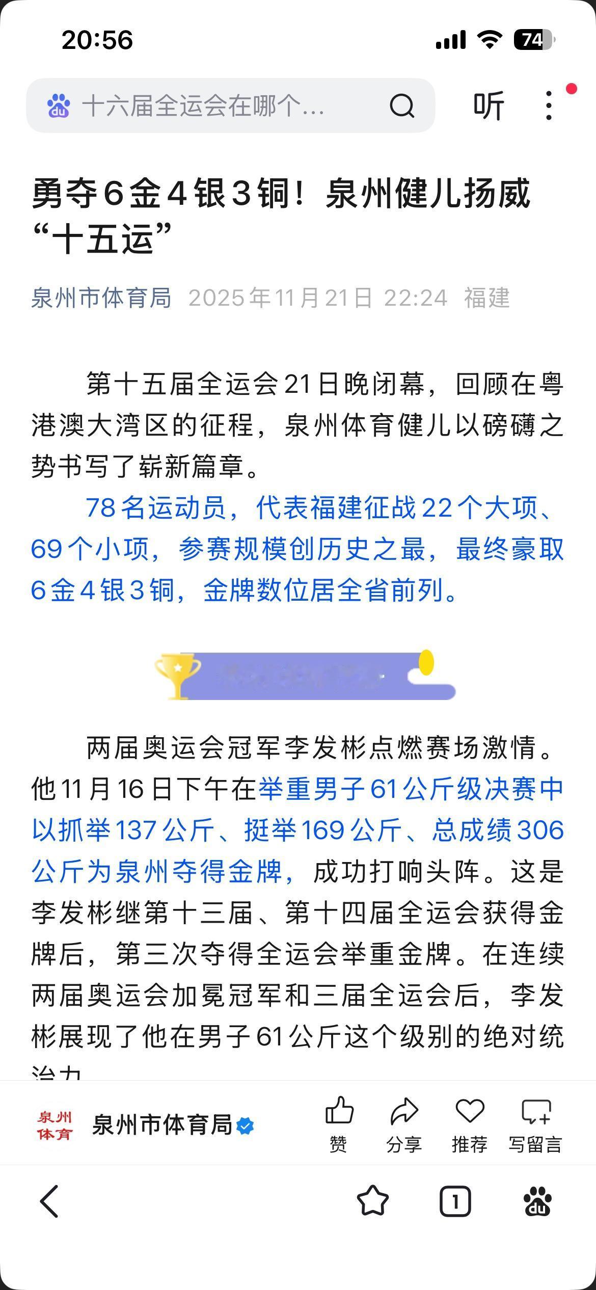 却没有看到 全运会各项目的金牌,奖牌,福州 都是第一。