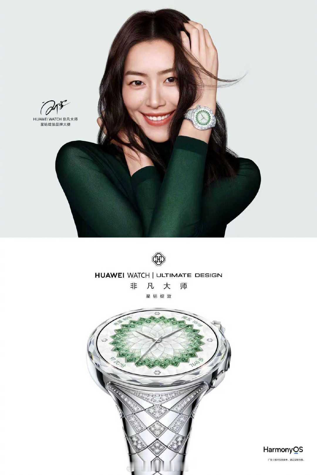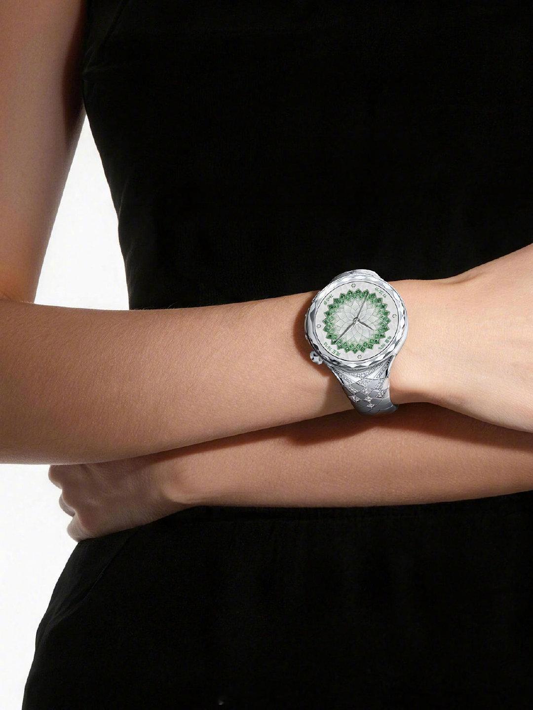 华为星钻手镯表品牌大使刘雯 何为腕间顶级美学?佩戴华为星钻手镯表便一目了然。华为携手国际知名珠宝设计师 Francesca Amfitheatrof,以绽放为核心灵感,把斐波那契黄金曲线精致融入华为星钻手镯表表盘、表冠与表带各处细节。99 颗天然钻石搭配精致钻切工艺,在刘雯绝佳气质加持下,华为这款珠宝智能腕表高端时尚格调直接拉满,精致耐看尽显品味。
