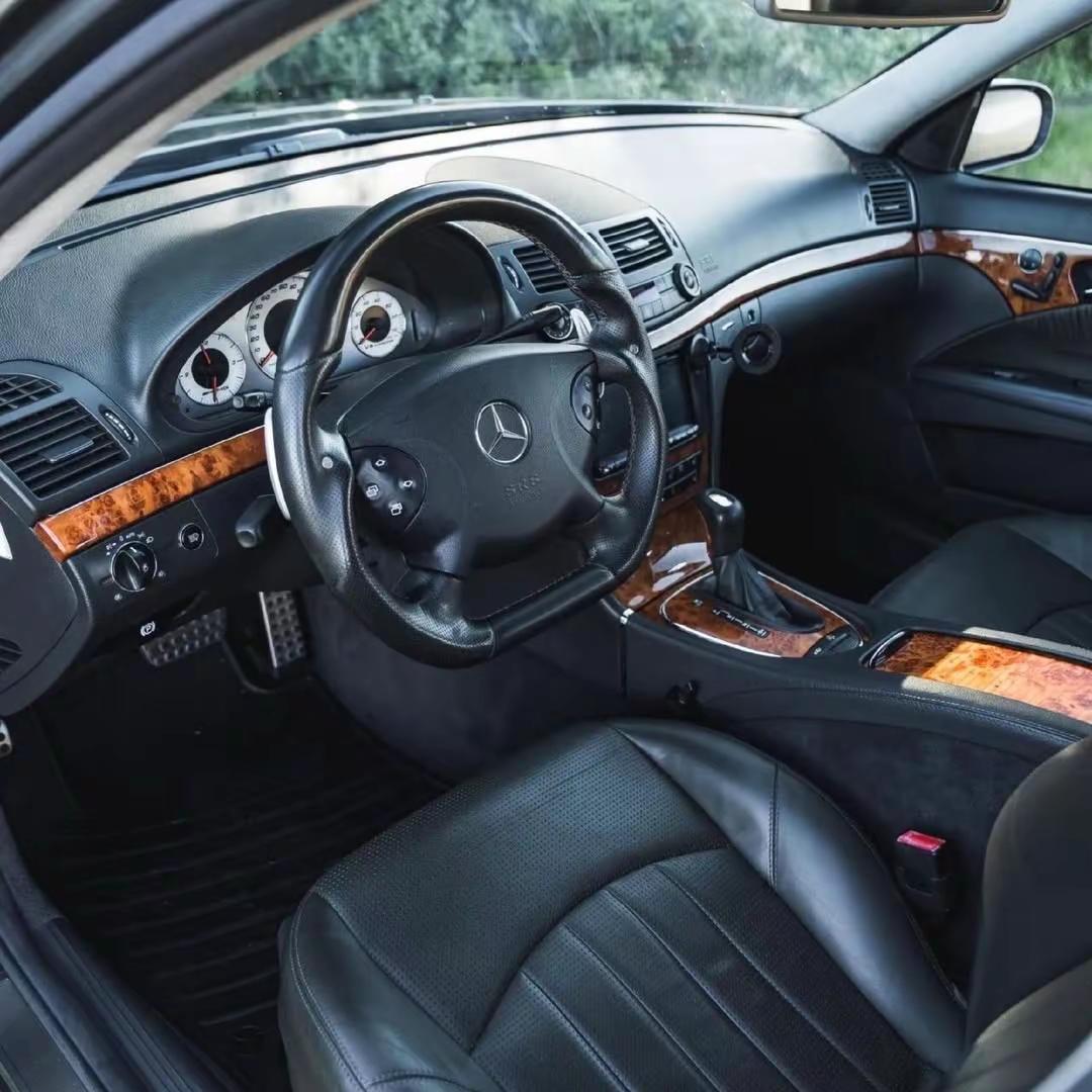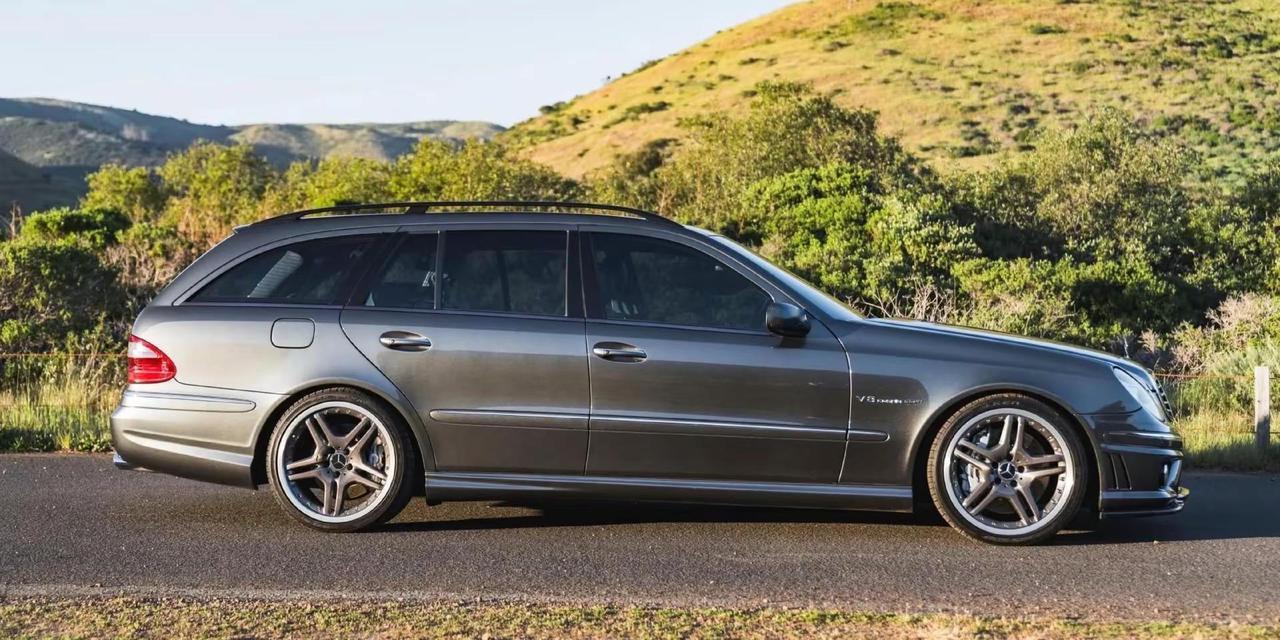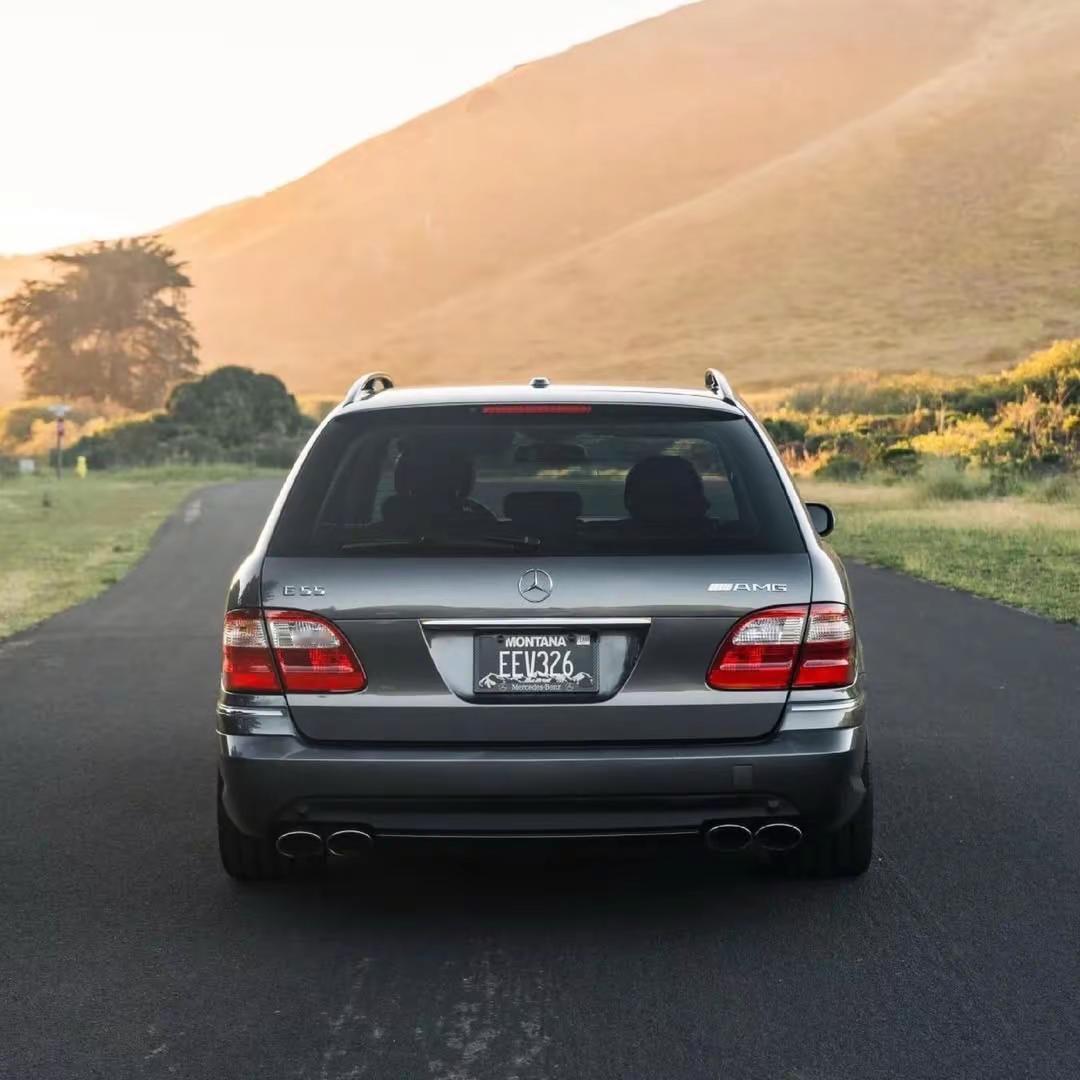 E55 AMG 旅行版。这辆 2006 款梅赛德斯-奔驰 E55 AMG 旅行版,曾于 2023 年 4 月在 BaT 成交,随后在当年被现任车主接手。此后投入超过 4.4 万美元 的整备与改装,让它从一台高性能豪华旅行车,进一步进化成一台兼顾机械质感、性能表达与日常使用能力的“全能型选手”。它搭载一台 5.4 升机械增压 V8 发动机,匹配重建过的 AMG Speedshift 五速自动变速箱。车身采用 Designo Graphite Metallic 深灰金属漆,内饰则是 Charcoal Nappa 黑灰色真皮,整体气质低调克制,却始终透着 AMG 时代那种不必张扬、也足够强势的性能底色。外观上,它配备 19 英寸多片式 AMG 轮毂;底盘方面保留 Airmatic 空气悬架,并带有天窗、双氙气大灯、前排加热/通风多轮廓座椅、第三排座椅以及四区自动空调,依然是一台讲究乘坐氛围与长途舒适性的奔驰旅行车。在此前的使用阶段,这辆车还进行过一系列偏性能取向的升级,包括 Wavetrac 限滑差速器、重新标定的发动机管理程序、机械增压皮带轮套件、长管排气歧管,以及带换挡拨片的 平底方向盘。现任车主接手后,又继续完善了车辆状态:包括 定制音响系统、重建变速箱、对前杠和翼子板重新喷漆,并更换了 扭矩转换器、传动支架、机械增压皮带与惰轮,以及冷却、供油、点火、制动和悬架系统中的多项部件。这类车最打动人的地方,不只是性能数据,而是它所代表的那个时代。那是一个 AMG 还坚持用大排量机械增压、旅行车还带着纯粹机械浪漫的年代。它既能在高速公路上从容巡航,也能在一脚油门下把“豪华家用车”瞬间切换成低沉怒吼的猛兽。放到今天看,这种既能装下生活,又能装下激情的车,反而更显稀有。奔驰E55 AMG 旅行车 汽车知识