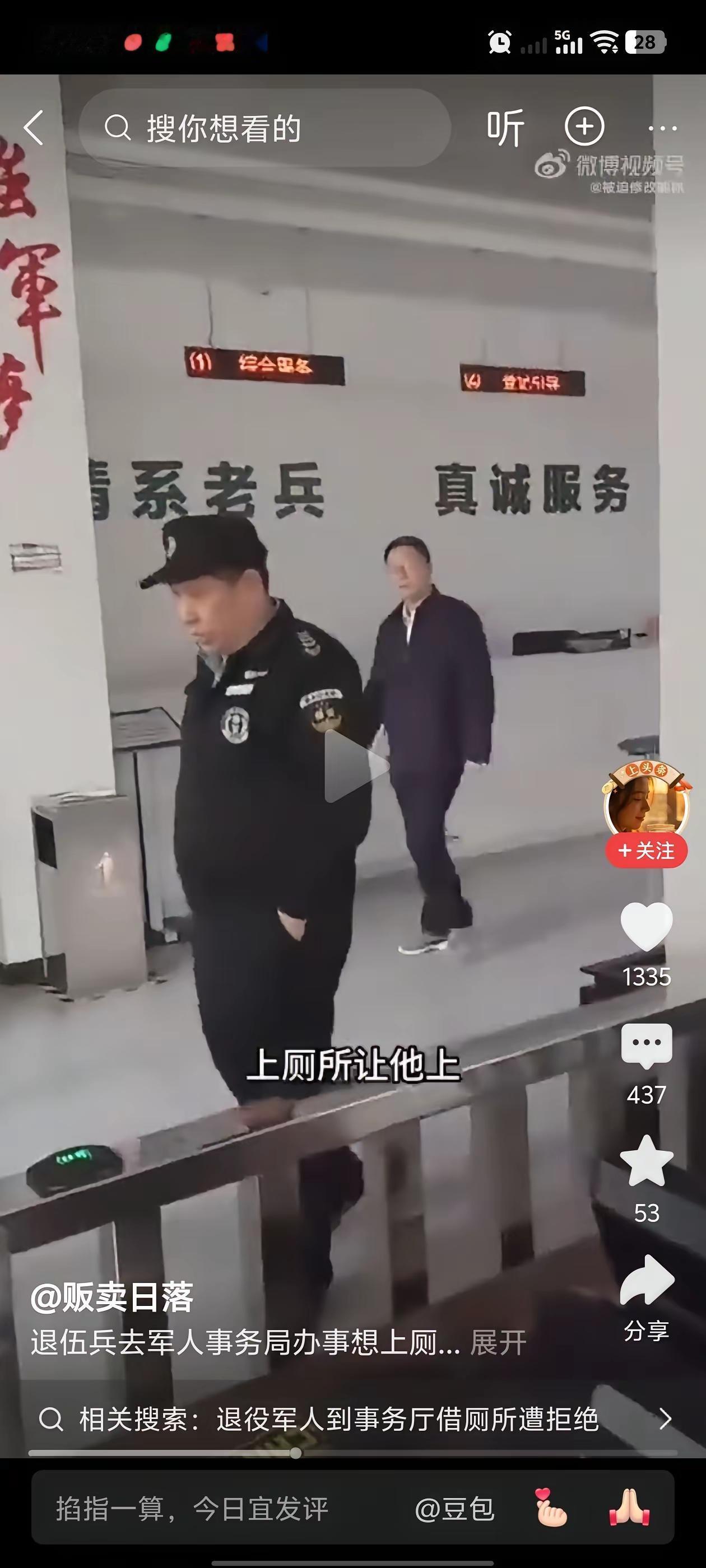 退伍老兵上厕所被拒的事件,希望能够严肃处理,太伤全国退伍老兵寒心了!