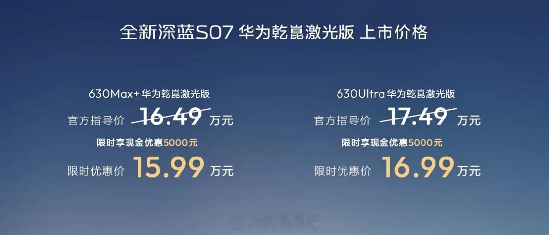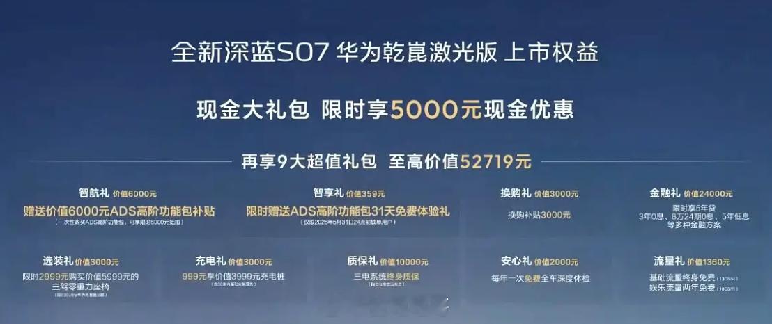 全新深蓝 S07 华为乾崑激光版上市