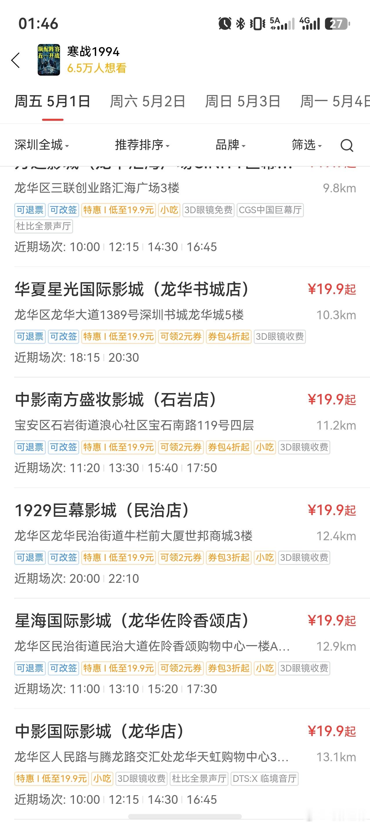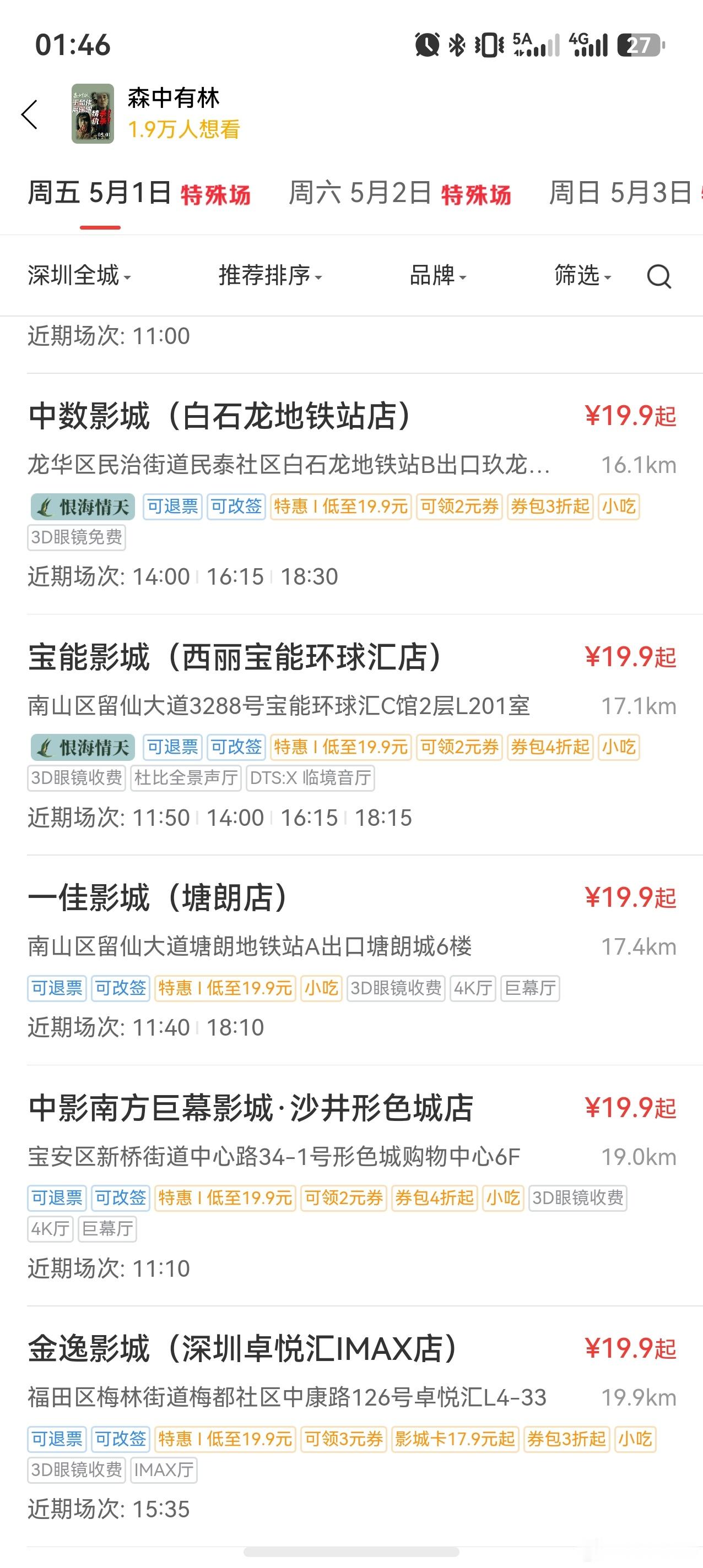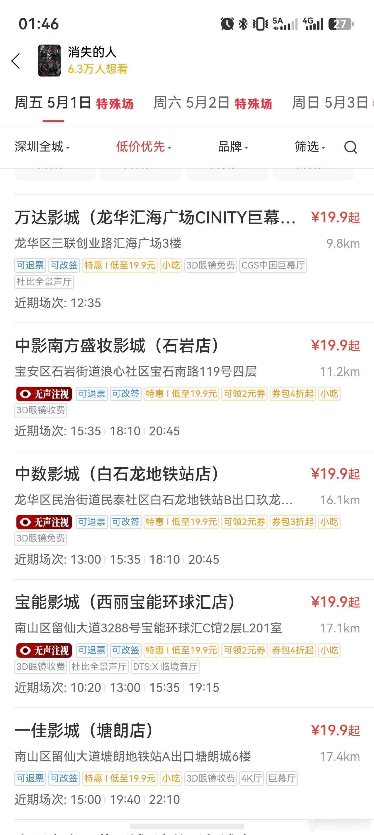 听听温特怎么说 五一档预售已经开启了《寒战1994》《消失的人》《森中有林》《10间敢死队》等电影19.9起,发行价也降低19.9砸起来!今年五一档整体阵容确实弱不少票价给力些看能不能吸引一些观众。