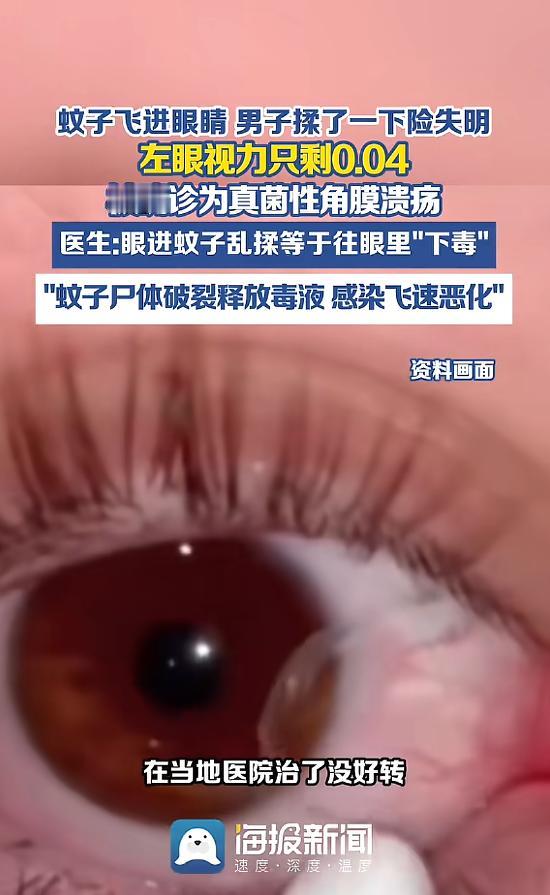 “悲剧还是发生了!”近日,福建,一男子骑车时,一只飞蚊进了他的左眼,他立马揉了揉眼,异物感消失后就没管了,不料没过多久,视力就开始明显下降,他特地赶到武汉治疗,最后确诊了严重真菌性角膜溃疡,差点失明!网友:下意识就这么做了!