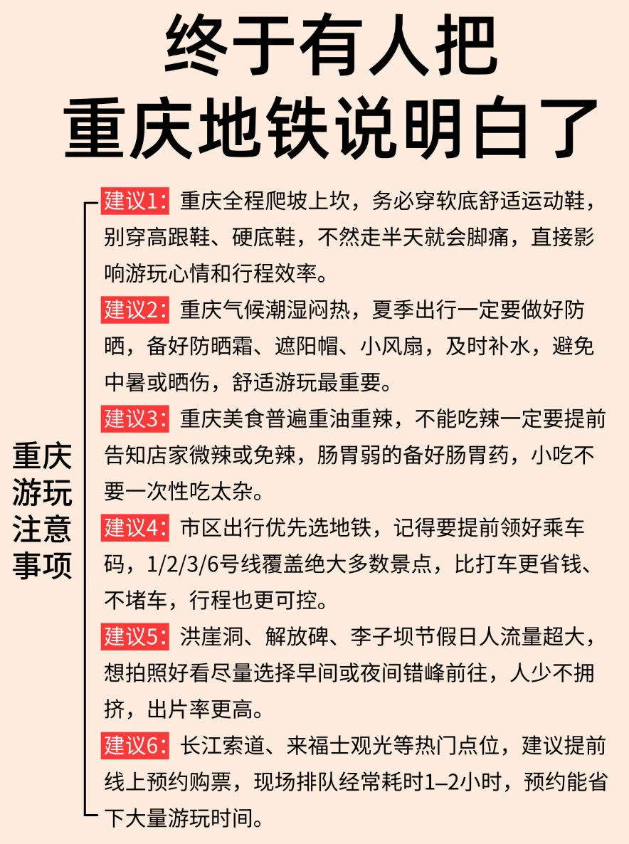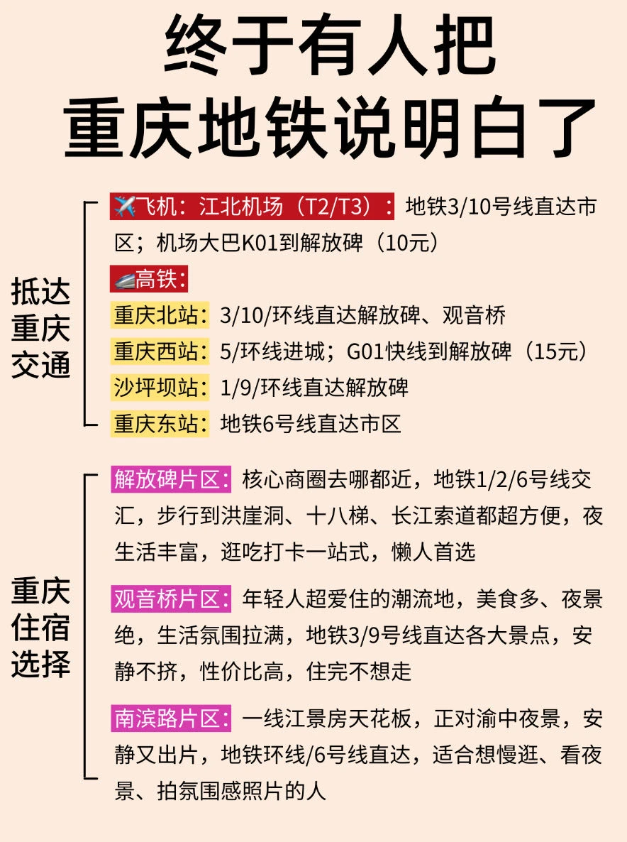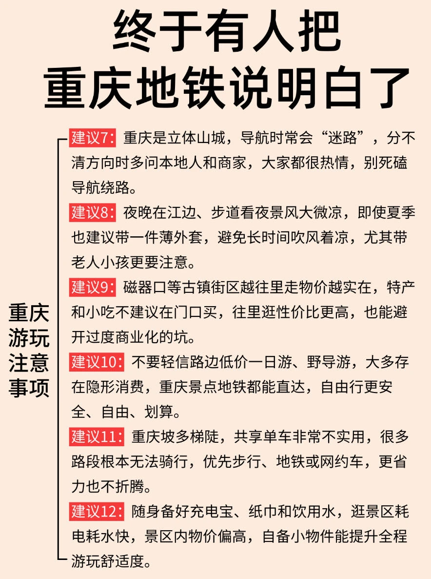 来重庆不知道怎么玩的,可以参考一下这份地铁边上的景点✔️分布,初来重庆的可以🐎起来了!