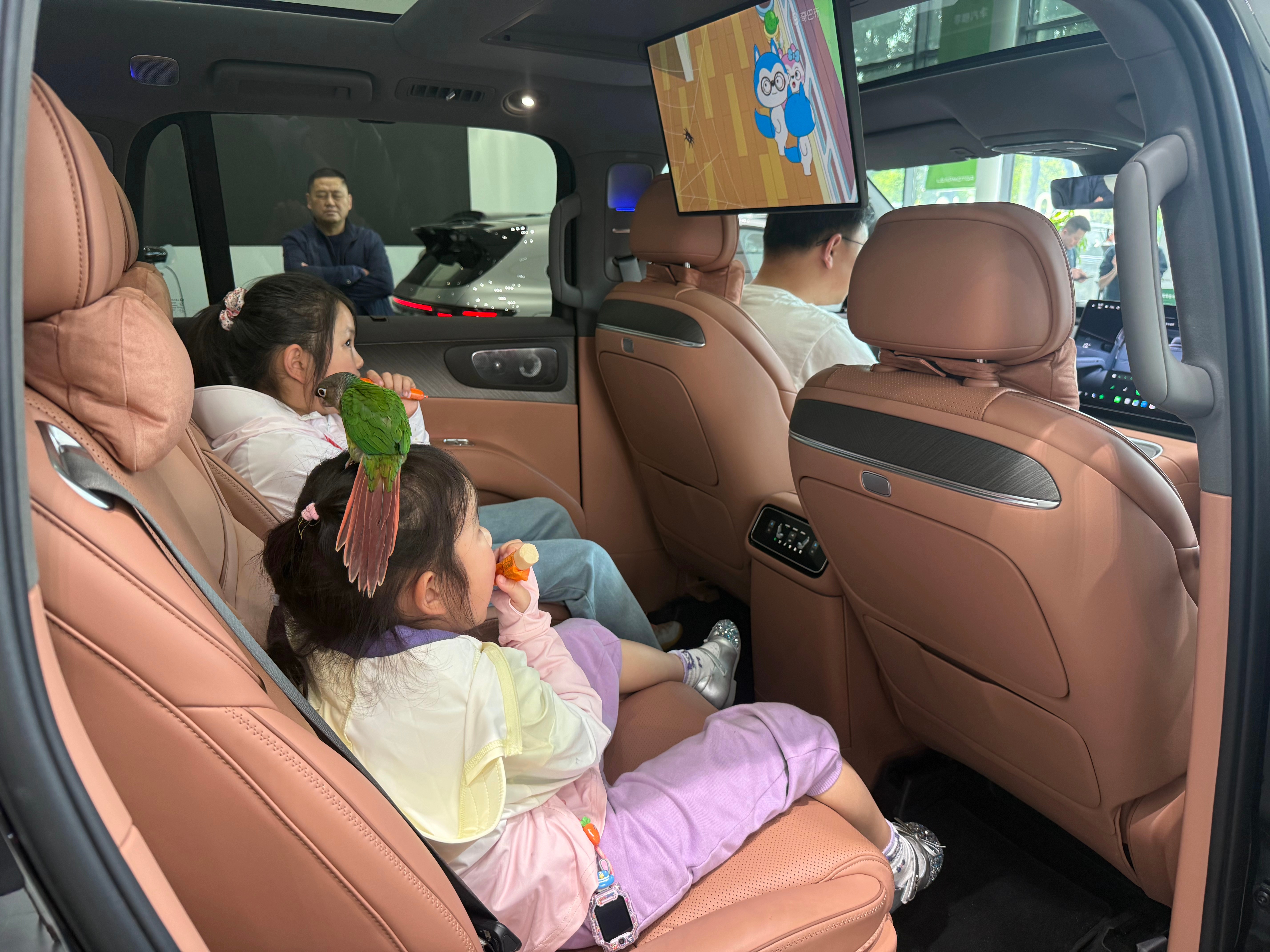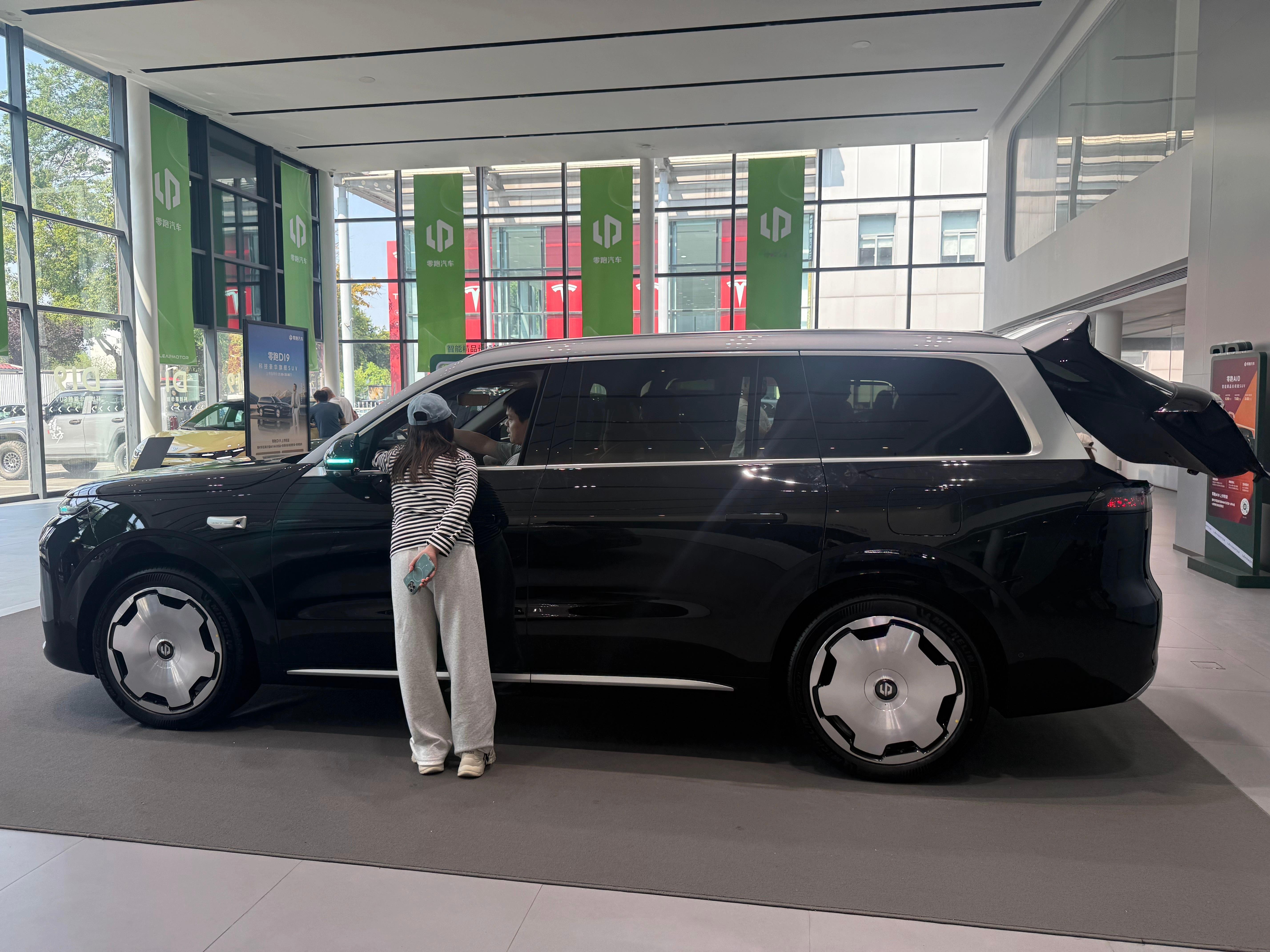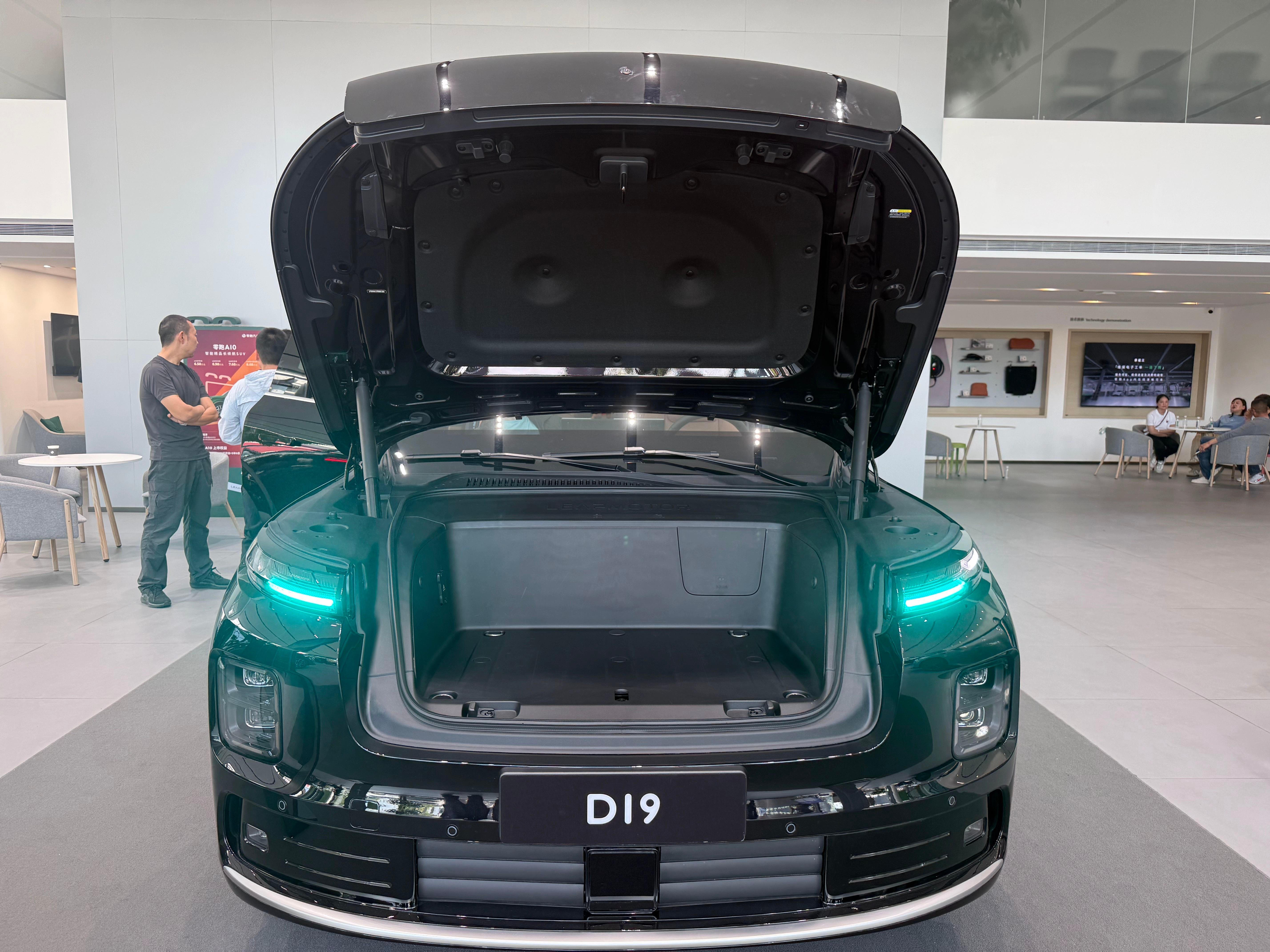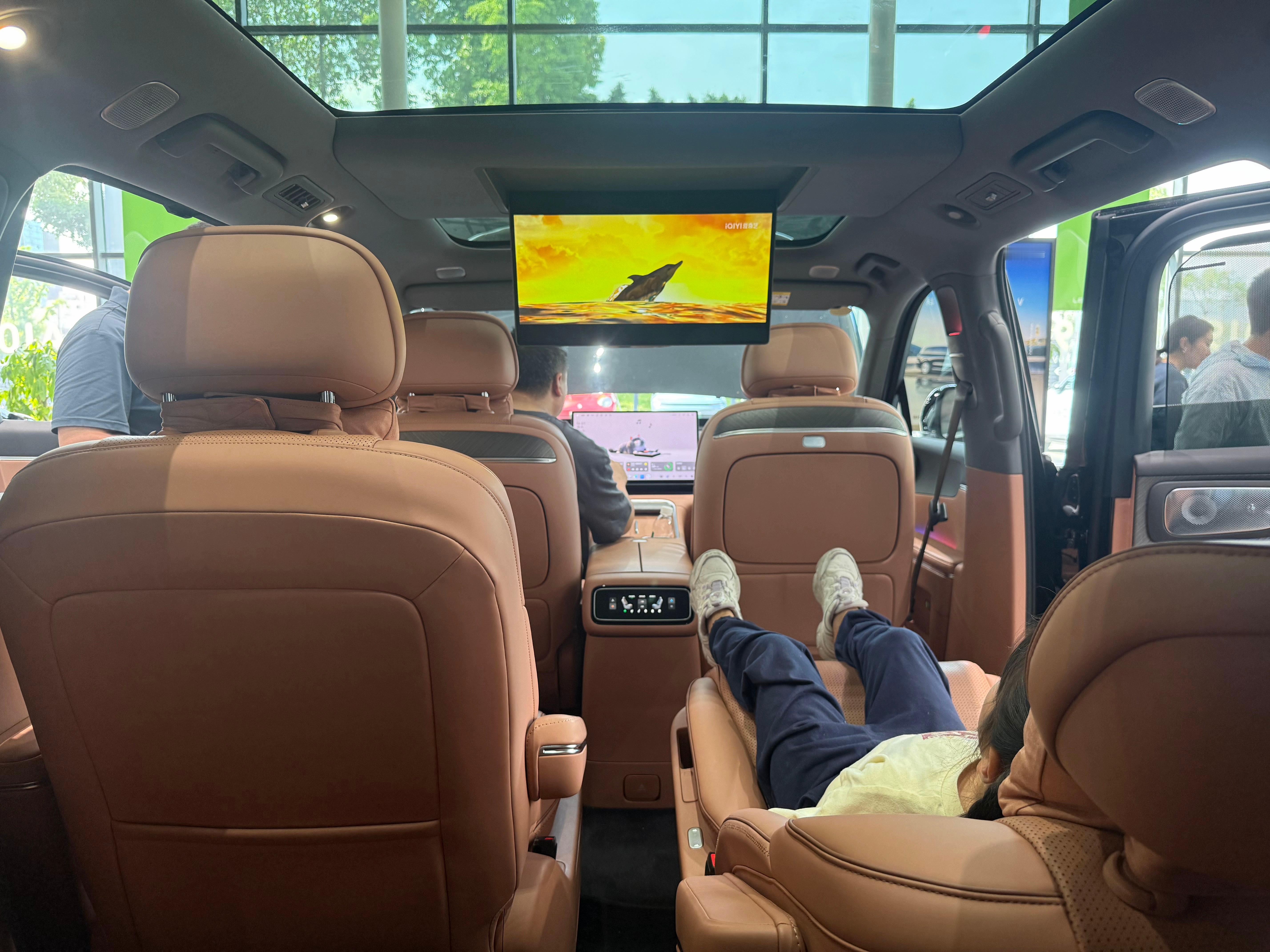 店内展车是一台外观金属黑,内饰丹雅棕的纯电六座智尊版,选装了双拼色车身、大饼轮毂、DLP大灯和制氧系统。来看车的用户几乎全是拖家带口,小孩、老人都有。看车过程中,大家最关注的就是空间和舒适配置,尤其是前备箱——甚至有用户直接拿来自家的儿童自行车,现场测试能否放下。其次就是零重力座椅和后排吸顶屏,几乎一直有人在体验。销售表示,这些用户多为换购或增购,而且很多都是零跑的老车主。