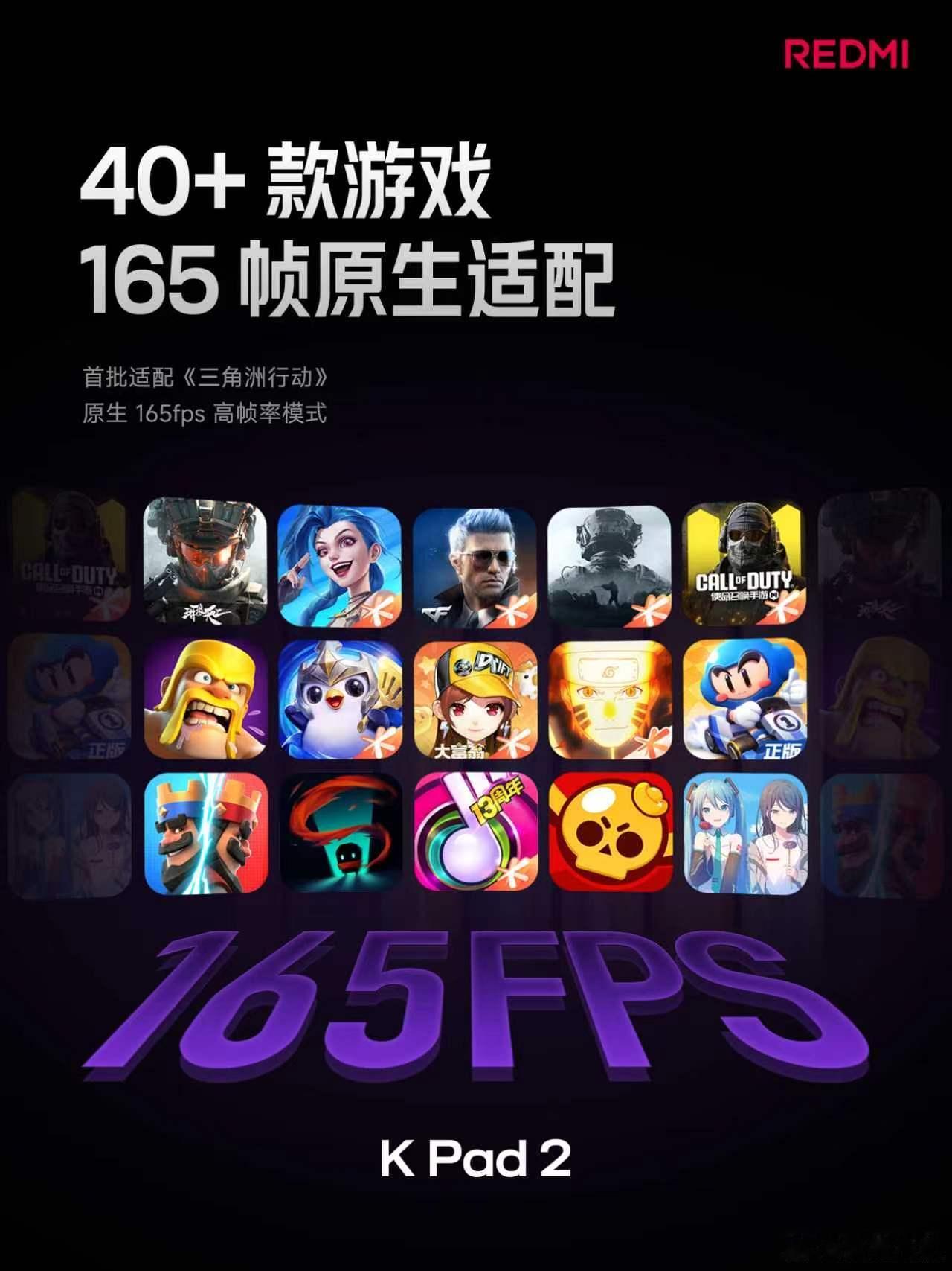 REDMI K Pad 2 升级 3K 旗舰 LCD 屏幕1100nits 高亮,165Hz 高刷新率支持超 40 款游戏原生 165fps 模式与超 200 位电竞选手联合触控调优不同类型游戏,适配不同分区触控调校针对 FPS 游戏,做专属调校响应快、操控准、定位稳,打造你的枪王首选红米k90max发布会