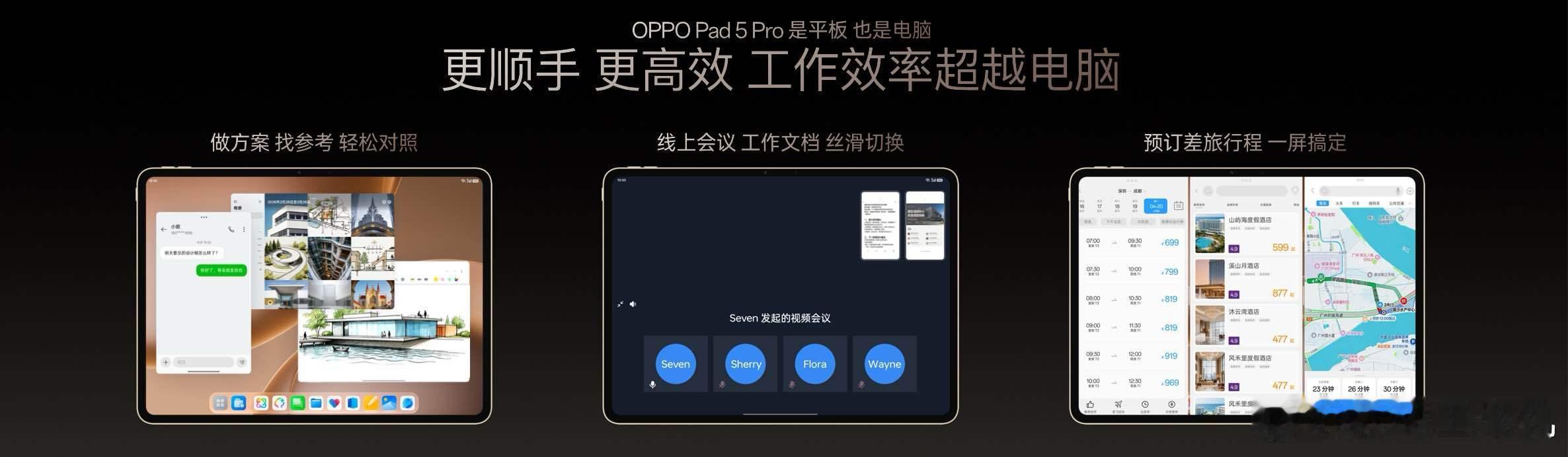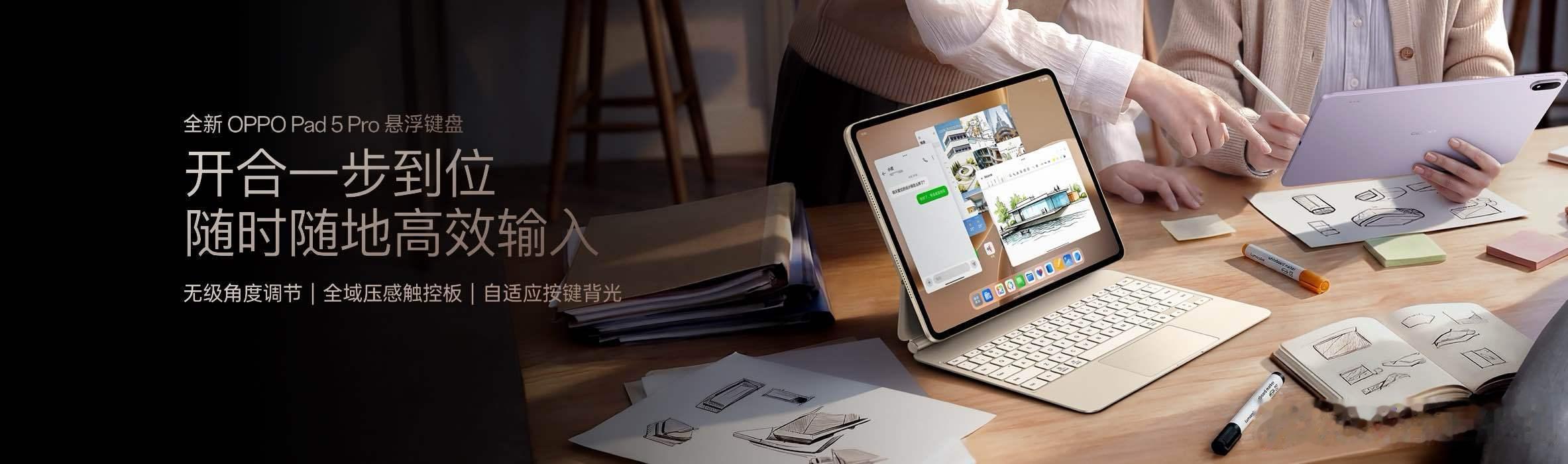 在配件上,搭配全新悬浮键盘,安卓板王 OPPO Pad 5 Pro 直接变身用户的下一台随身电脑!不止形态像电脑,从顺畅开合的转轴,到细腻的触控板手感,每一处细节都达到了高端笔记本电脑的水准。在系统交互上,搭载新一代 ColorOS 16,首次将其备受好评的全景自由窗带到平板品类,流畅操作体验助力平板多线程工作效率大幅提升。OPPO Pad 5 Pro 还改写了安卓文件管理逻辑,无需翻阅聊天记录、手动整理,查找文件就像找 App 一样简单,更把 “桌面文件夹” 这一符合直觉的操作从电脑搬到了平板上。