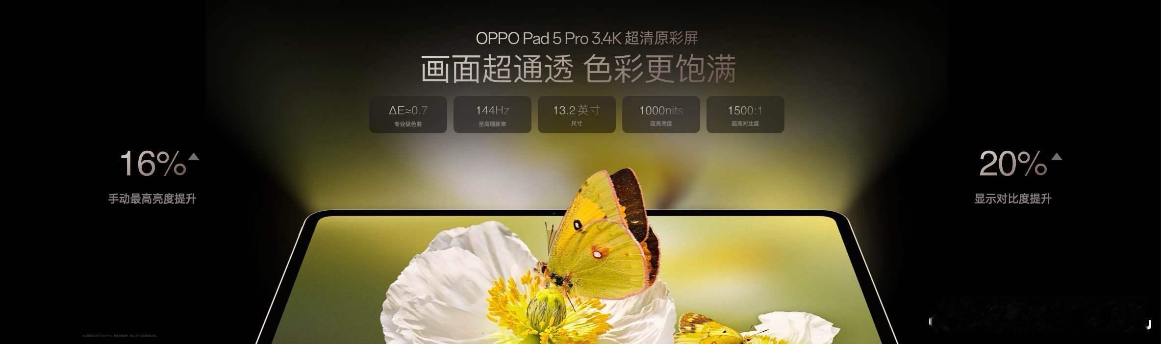OPPO Pad 5 Pro 配备 13.2 英寸 3.4K 超清原彩屏,清晰度、亮度、对比度表现出色,色彩通透又鲜活。首批适配剪映专业版, 4K 素材也能流畅剪辑,轻松剪大片;影音体验超越电脑,轻松捧在手中,随时随地享受堪比私人影院的观影体验。更配备行业最大 13380 mAh 电池,彻底告别电量焦虑。