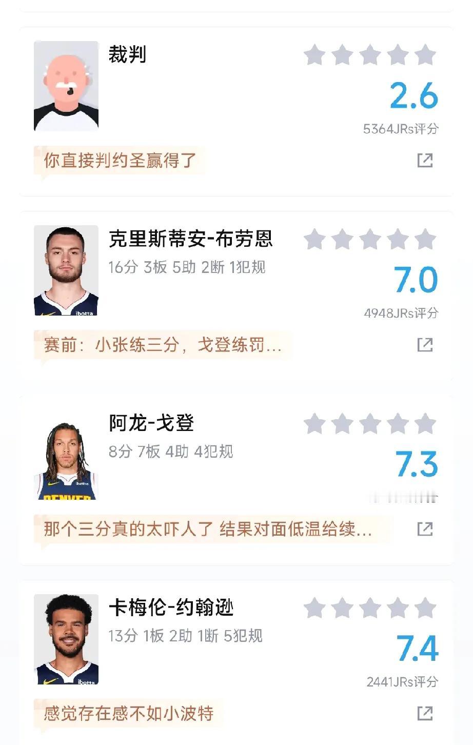 赛后球迷点评掘金森林狼球员: 1,约基奇:假摔GOAT! 2,穆雷:落后三分,铁