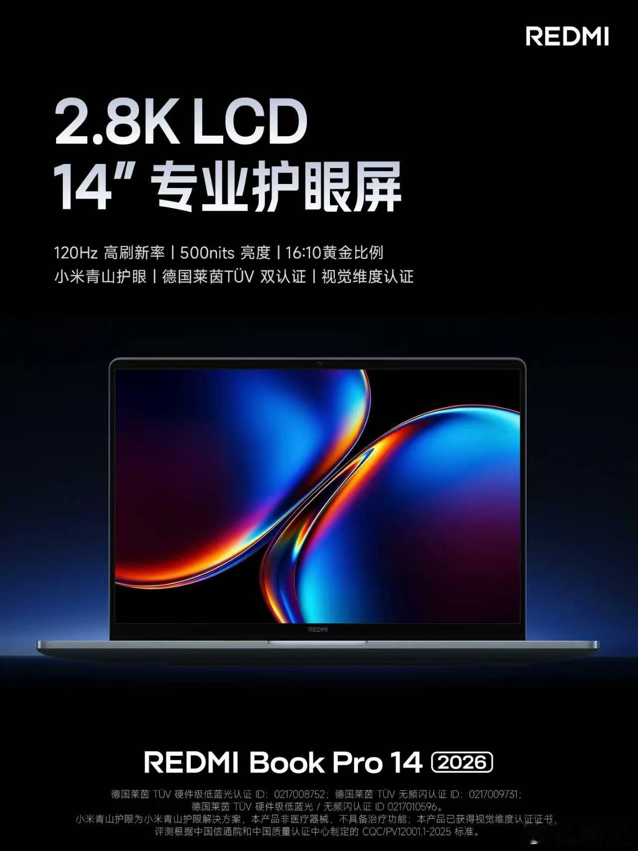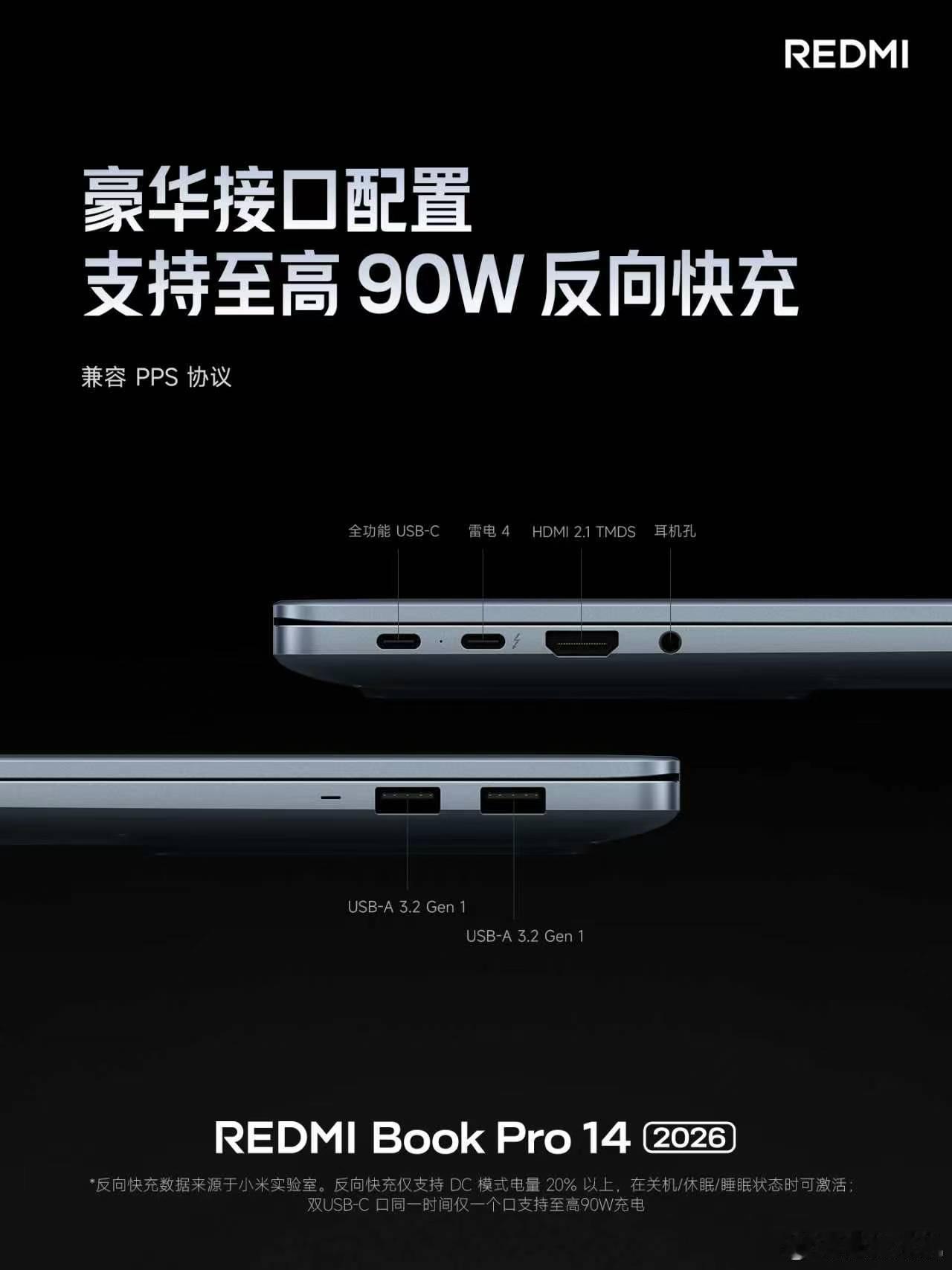全新 REDMI Book Pro 14 2026 登场2.8K LCD 高清屏,支持小米青山护眼全金属机身,精密喷砂工艺,旗舰质感接口配置全面,双 USB-C 接口最高支持了 90W 反向充电,兼容 PPS 协议从细节开始,为你打造更好的高性能笔记本!红米k90max发布会