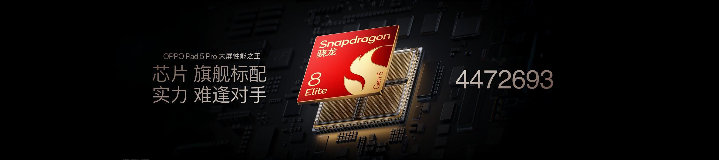 OPPO Pad 5 Pro 简直是新一代安卓板王,更是用户的下一台随身电脑。搭载了第五代骁龙 8 至尊版芯片,跑分突破 447 万分,堪称大屏平板性能之王