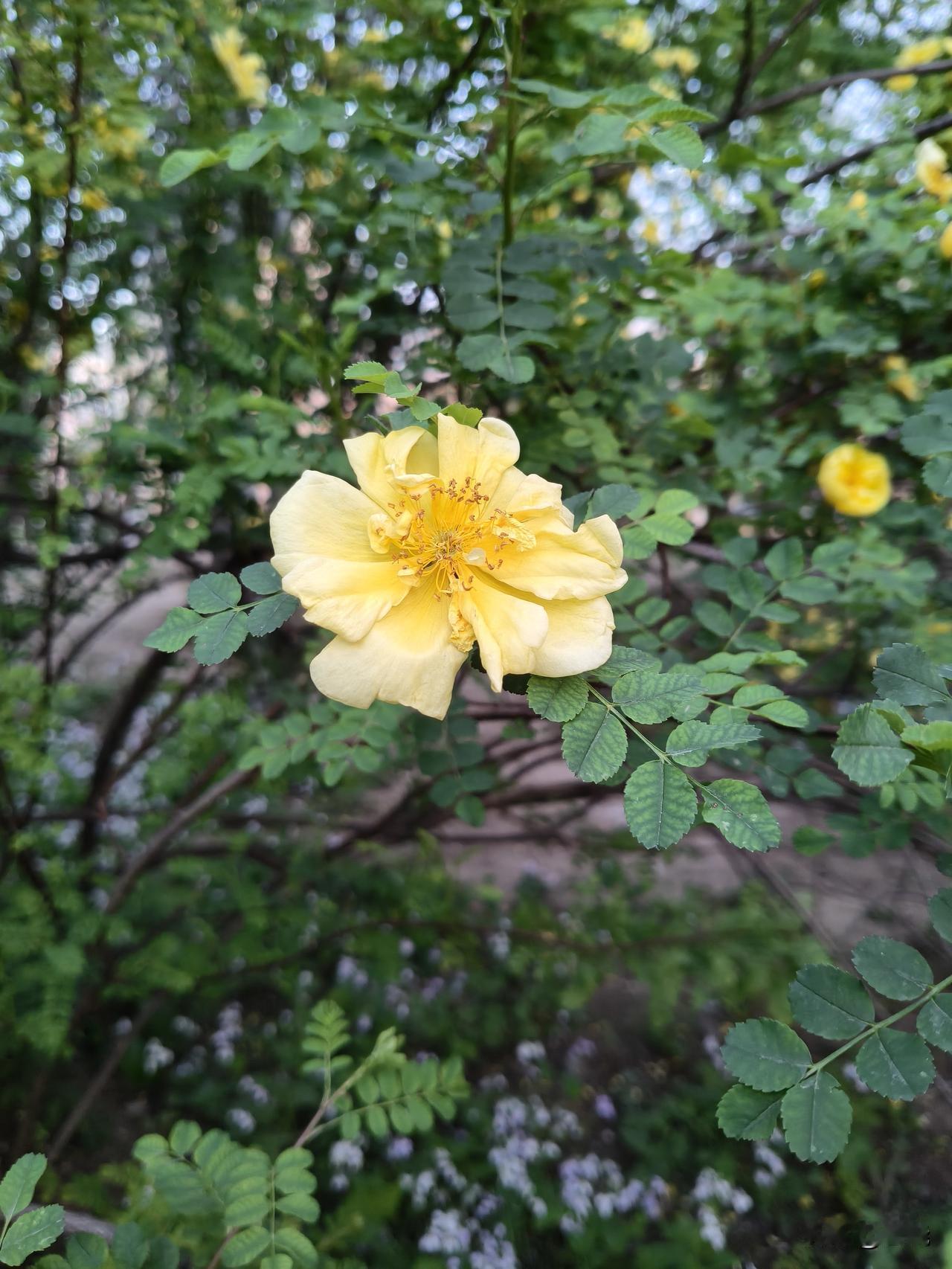 重瓣黄刺玫 我发现这几天,小区路边、花园里的黄刺玫开得太茂盛了,高的矮的到处随处