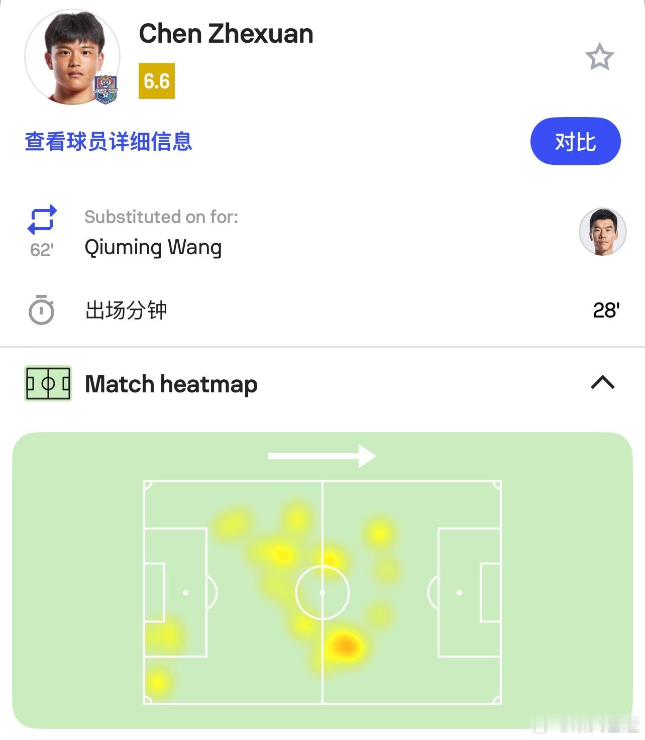 陈哲宣去年踢山东不冷静吃罚单,今天又是同样的对手,替补上来踢得不错,能力逐步往首