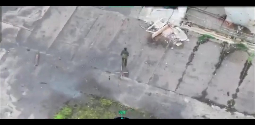 一个俄军士兵被无人机炸成两半截,上半截炸到房顶上,还没死,还能动,还能喘气。