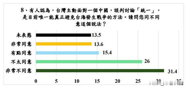 1. 50.7%民众认同:台湾应主动面对统一讨论,不再回避。