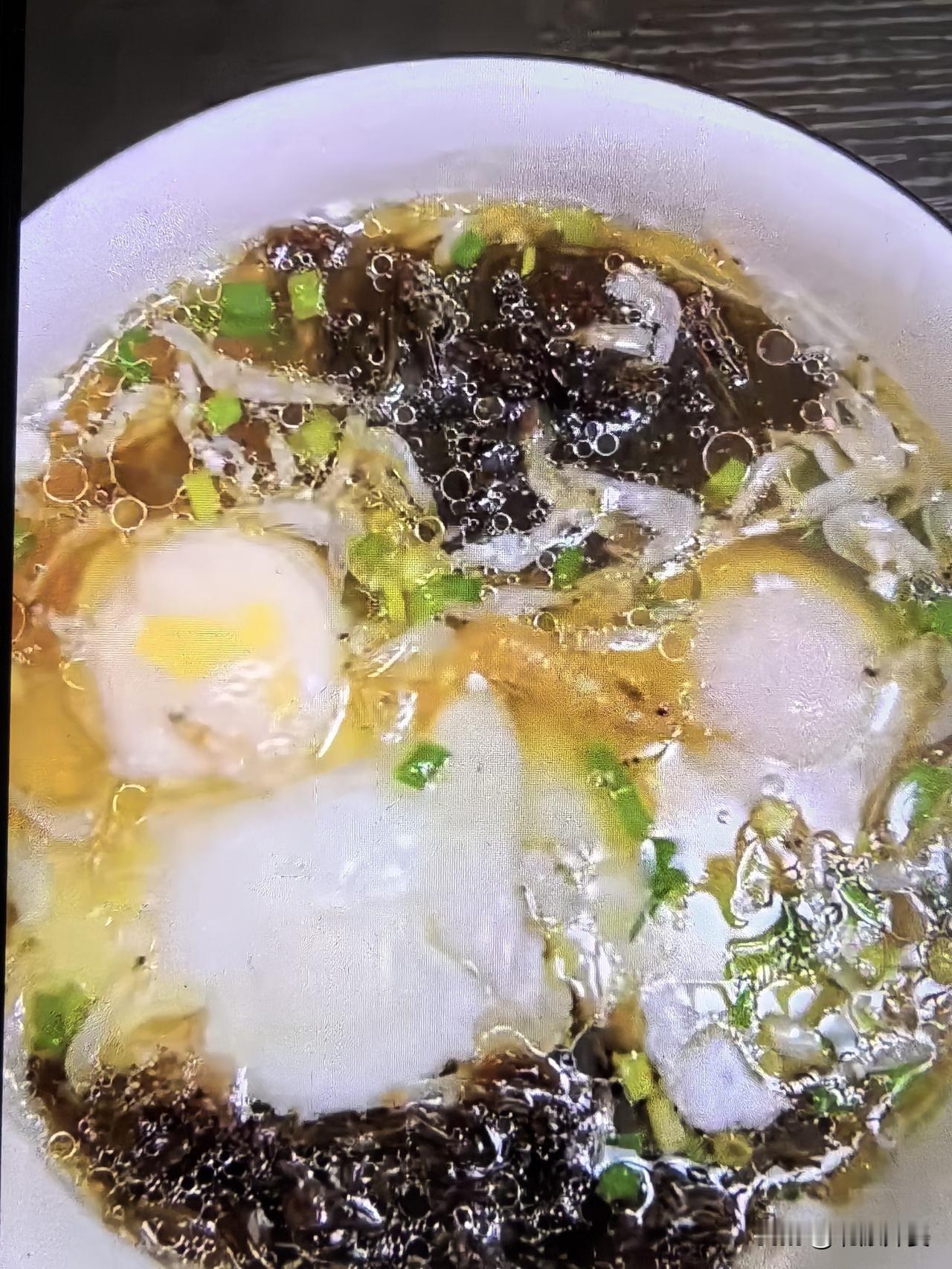 这个汤不用炝锅,先做荷包蛋,一人一个鸡蛋,鸡蛋熟了,加紫菜,虾皮,葱花调味加盐,酱油就搞定,别看简单但很好喝