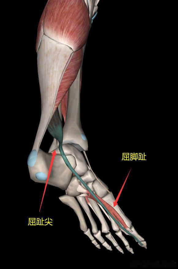 ✅屈脚趾就是这个肌肉的作用了,但是要注意的是:弯曲的是近端的关节,而不是远端的趾尖。屈脚趾(图4)屈趾尖(图5)