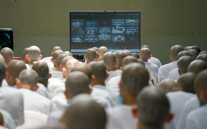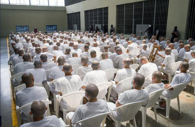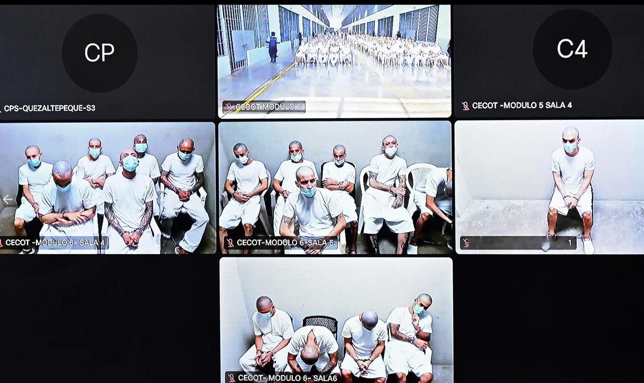 中美洲最危险帮派的恐怖成员,通过网络视频连线,从位于萨尔瓦多特科卢卡的反恐监禁中心大型监狱内,接受远程审判。他们的面孔,从这座高科技监狱的高墙内实时传输到法庭。