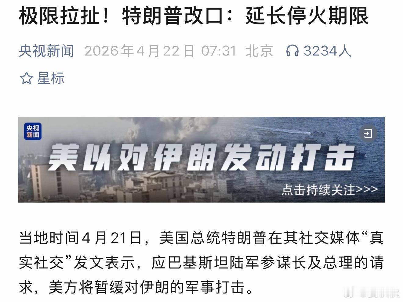 伊朗正在用特朗普的方式,来对待特朗普。面对“伊朗普”,特朗普还挺难招架的。4月21日晚上,伊朗突然宣布,拒绝参加原定次日在巴基斯坦伊斯兰堡举行的第二轮会谈。几乎同一时间,美国总统特朗普在社交媒体上发文,说应巴基斯坦请求,同意延长停火期限,等伊朗提交方案。虽然我觉得最终的结果,大概率是:最后一刻会谈,谈不出什么结果,双方互抛狠话,再最后一刻会谈……但是,伊朗体现出的“灵活的强硬”,确实让人刮目相看。除非特朗普敢冒天下之大不韪,出动地面部队,否则这场冲突,美国或许赢了军事,但要失去很多很多。全世界都看着呢。本来,特朗普靠突袭,团灭伊朗领导层之后,已经大获成功。但他不满足,结果如黔之驴,“赢家效应”的折扣越打越大。特朗普对付伊朗,无非他商战中的几招。最后期限,极限施压,反复无常,信息迷雾,最后“交易式置换”。40多天来,特朗普给出过5个“最后期限”,且反复施压,说要“毁灭文明”,要“打回石器时代”,而且一会儿“谢谢伊朗”,一会儿羞辱伊朗,提出过一个又一个类似于“解封200亿美元资产,换浓缩铀库存”的计划……一开始,伊朗屡屡中招。最近的一次,是表态“开放霍尔木兹海峡”,结果被特朗普一通“伊朗无条件投降”的表态,弄得无比尴尬。所以呢,伊朗也不按常理出牌了。第一招,拖。不到最后一刻不亮底牌。过去48小时,美国“一直等待德黑兰的信号”,副总统万斯也随时准备前往巴基斯坦。最后伊朗却宣布,不去了。第二招,狠。特朗普施压,伊朗也反向施压。宣布重新关闭霍尔木兹海峡,搅乱资本市场。同时伊朗军方宣布:所有人必须立即离开阿联酋、卡塔尔、巴林、沙特和科威特……第三招,乱。特朗普不是爱发帖吗?伊朗也通过官方媒体、匿名消息人士和地区盟友,传递复杂甚至矛盾的信息。一会儿说“可能谈”,一会儿说“不去了”,一会儿说“有先决条件”。最后又说“不谈了”。第四招,顶。特朗普喜欢漫天要价,伊朗一开始挺认真的,后来发现没用。你开一个天价,我不仅不还价,反而开出一个更高的天价,核问题、海峡问题、赔偿问题,一步不让,把谈判的基准线拉到自己这边。说实话,“特朗普对阵伊朗普”,看起来是针尖对麦芒,精彩纷呈,但背后却隐藏着巨大的风险。当双方都采取“悬崖战术”时,最大的危险就是一起掉下悬崖。而光脚的不怕穿鞋的,特朗普显然不愿意同归于尽。这个世界,正在改变,国际关系的“玩法”天差地别。传统的、讲究规则和默契的外交方式,正在被这种更直接、更戏剧化、更注重即时心理效应的“交易式外交”所冲击。而最终,在国家博弈这场大戏里,没有谁永远是赢家。