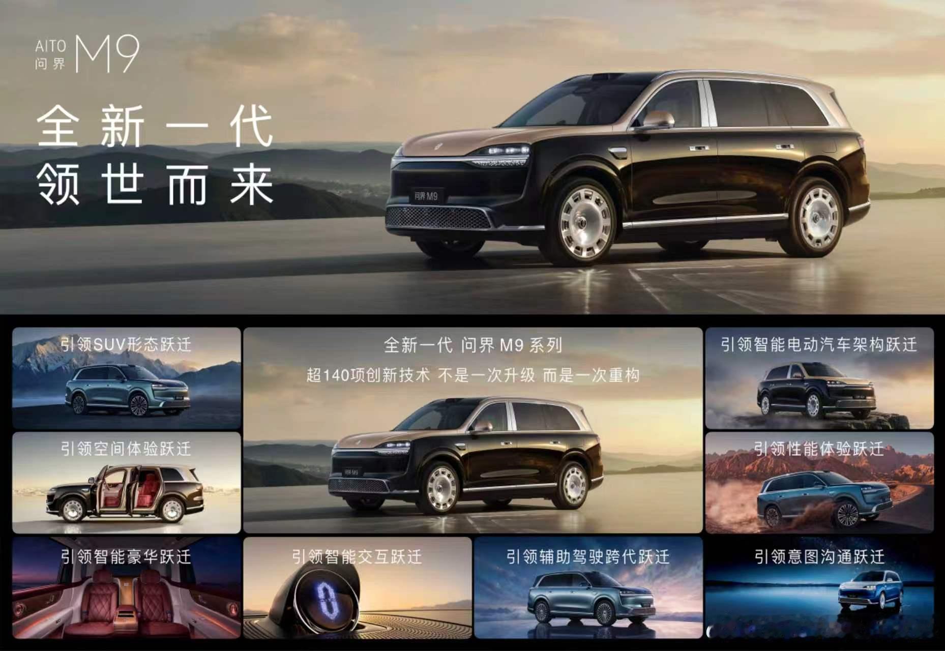 问界M9解锁华为顶配科技包!ADS5智驾、6激光雷达立体矩阵、巨鲸电池全安排,硬