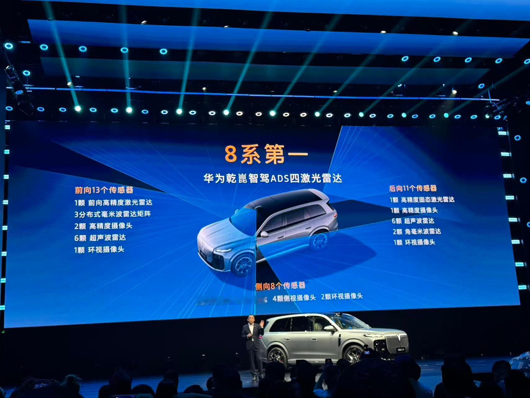 行业首搭华为 896 线四激光雷达(1 颗主雷达+3 颗固态),硬件上已经具备 L3 级辅助驾驶的支持能力。