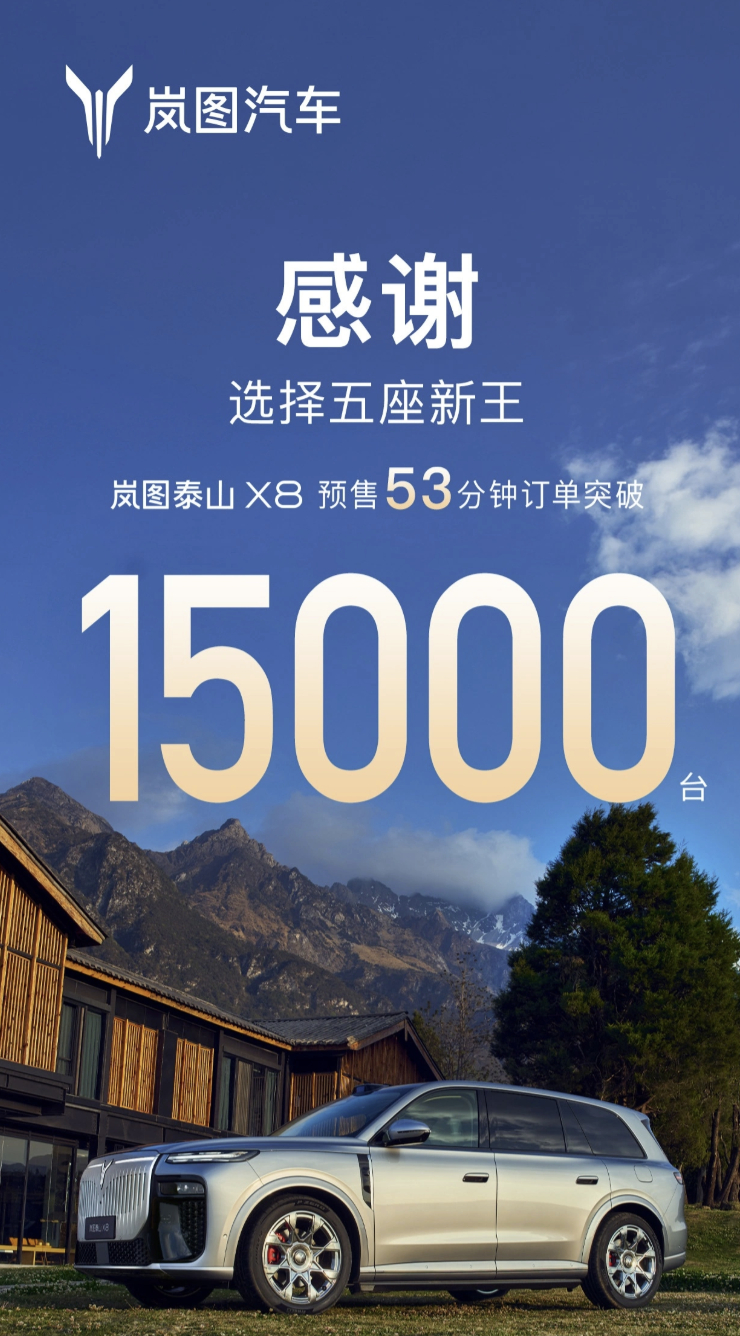 30.29万起岚图泰山X8预售岚图泰山X8预售53分钟订单破1.5万