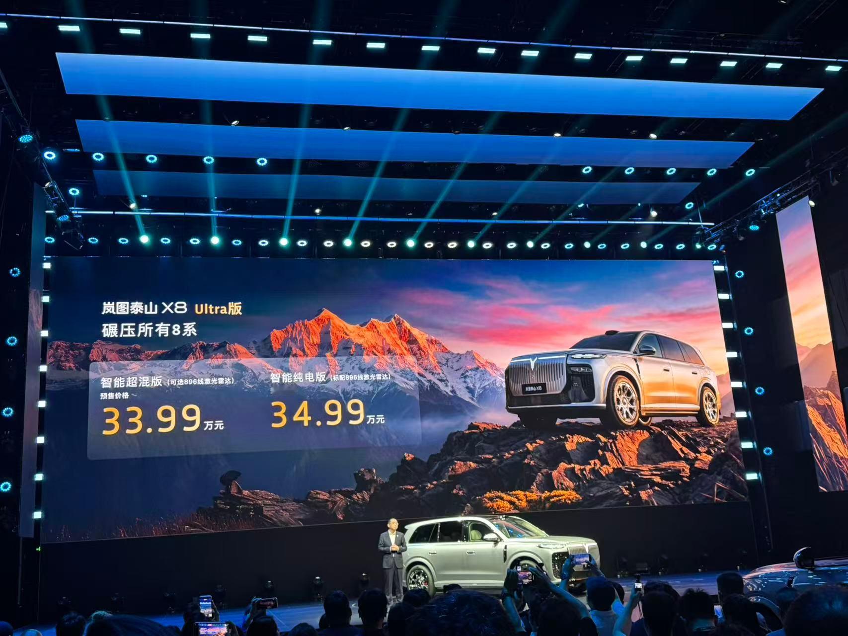 岚图今晚开始预售泰山 X8,首搭华为 896 线四激光雷达,预售价 30.29 万起。