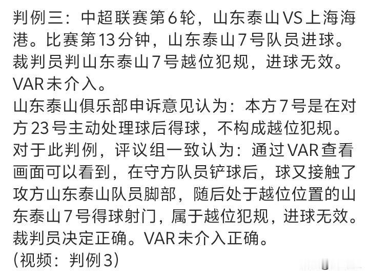 泰山队申诉评议结果大跌眼镜,泰山对阵海港,谢文能的这粒精彩进球被吹越位!对于这次争议判罚,评议组一致认为,海港球员在铲球后又碰到了泰山队球员脚部,从而让谢文能获得机会并实现进球,应该属于越位,被判无效正确。