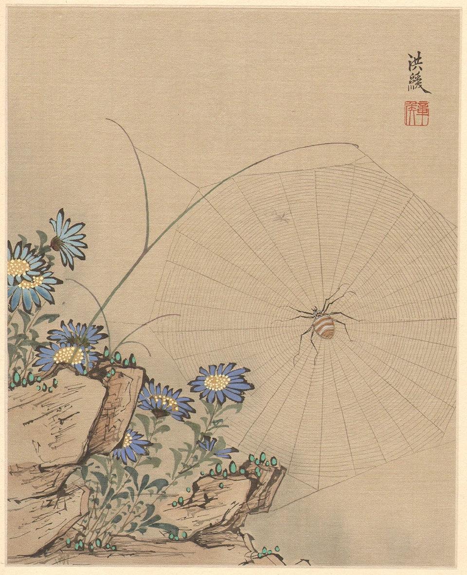 野菊、奇石、蛛丝,线条细劲如铁线篆