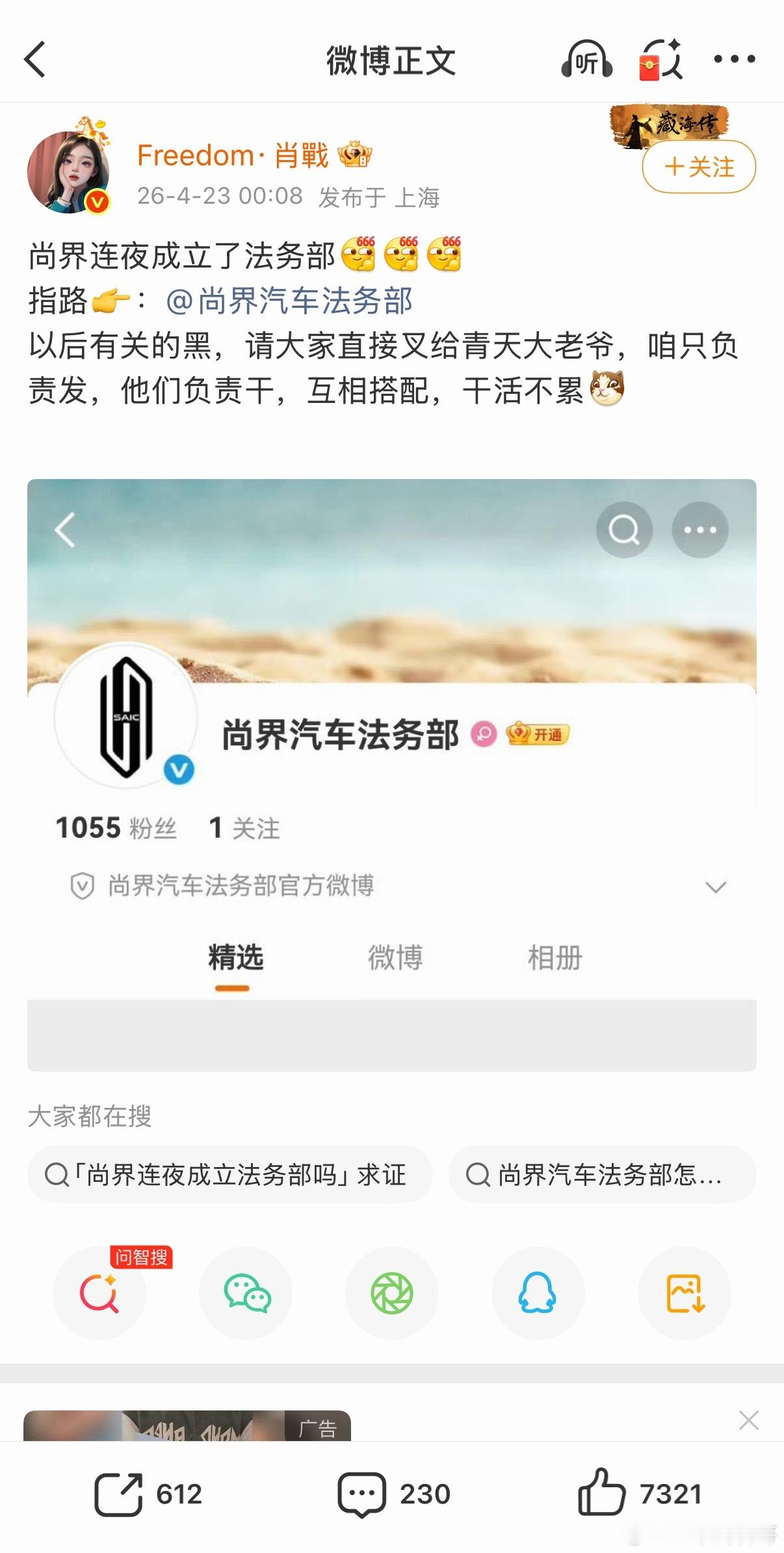 肖战粉丝太猛了!执行力真强!已经开始帮助尚界法务部全网维权了!凝聚力真强!看谁以后谁还敢黑尚界!