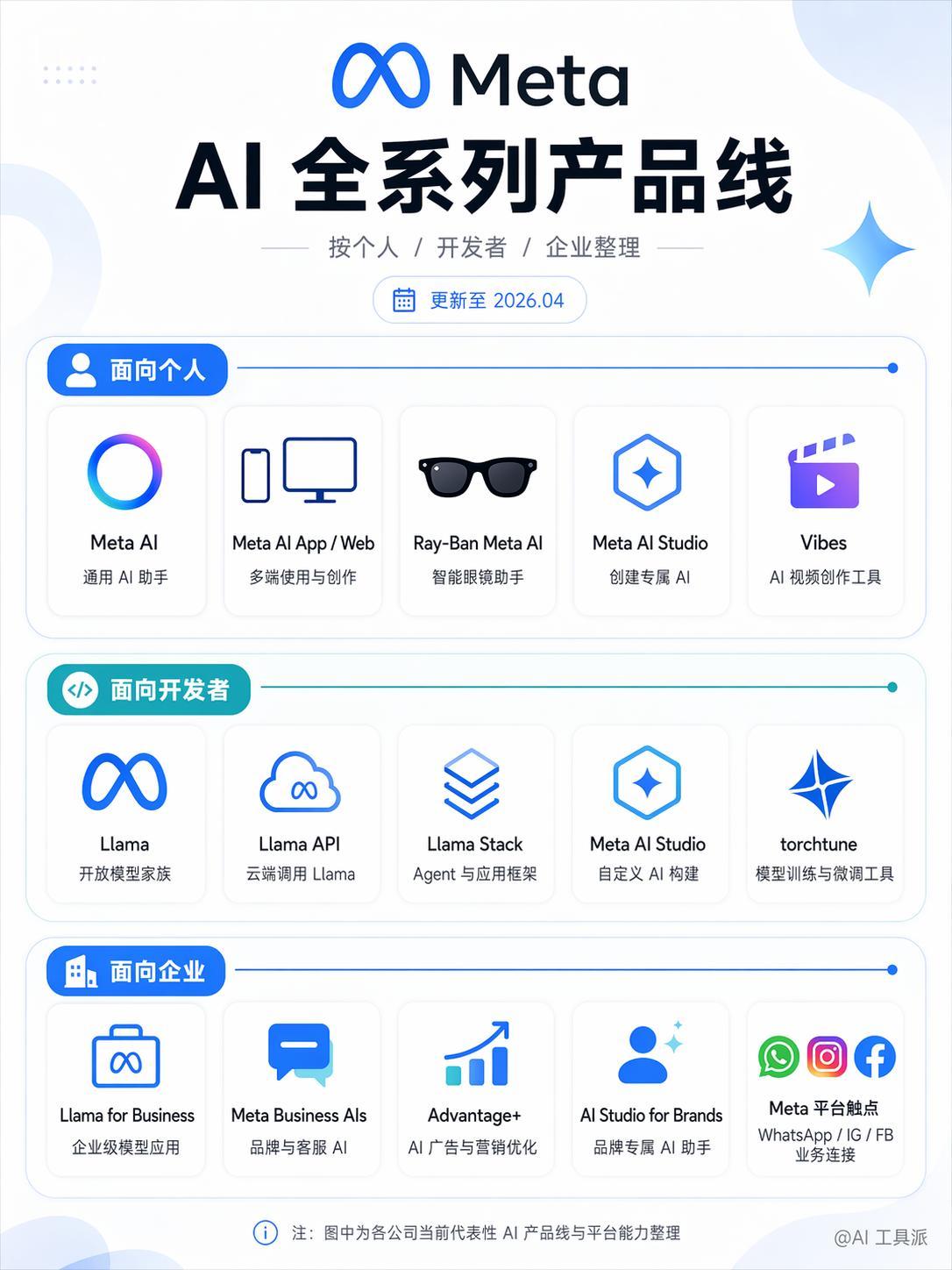 Meta 这家公司很有代表性,一边做 Meta AI,一边持续推进 Llama 这样的开放模型。很多开发者会一直盯着它,看中的就是它对开源 AI 生态的影响力。