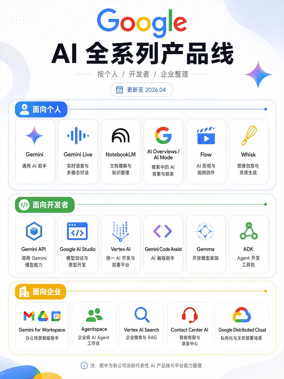 Google 的优势是技术积累深、产品线也很完整。Gemini、NotebookLM、Veo、NanoBanana 放在一起看,会发现它想做的远不只是聊天助手,更像是在搭一整套 AI 生态。