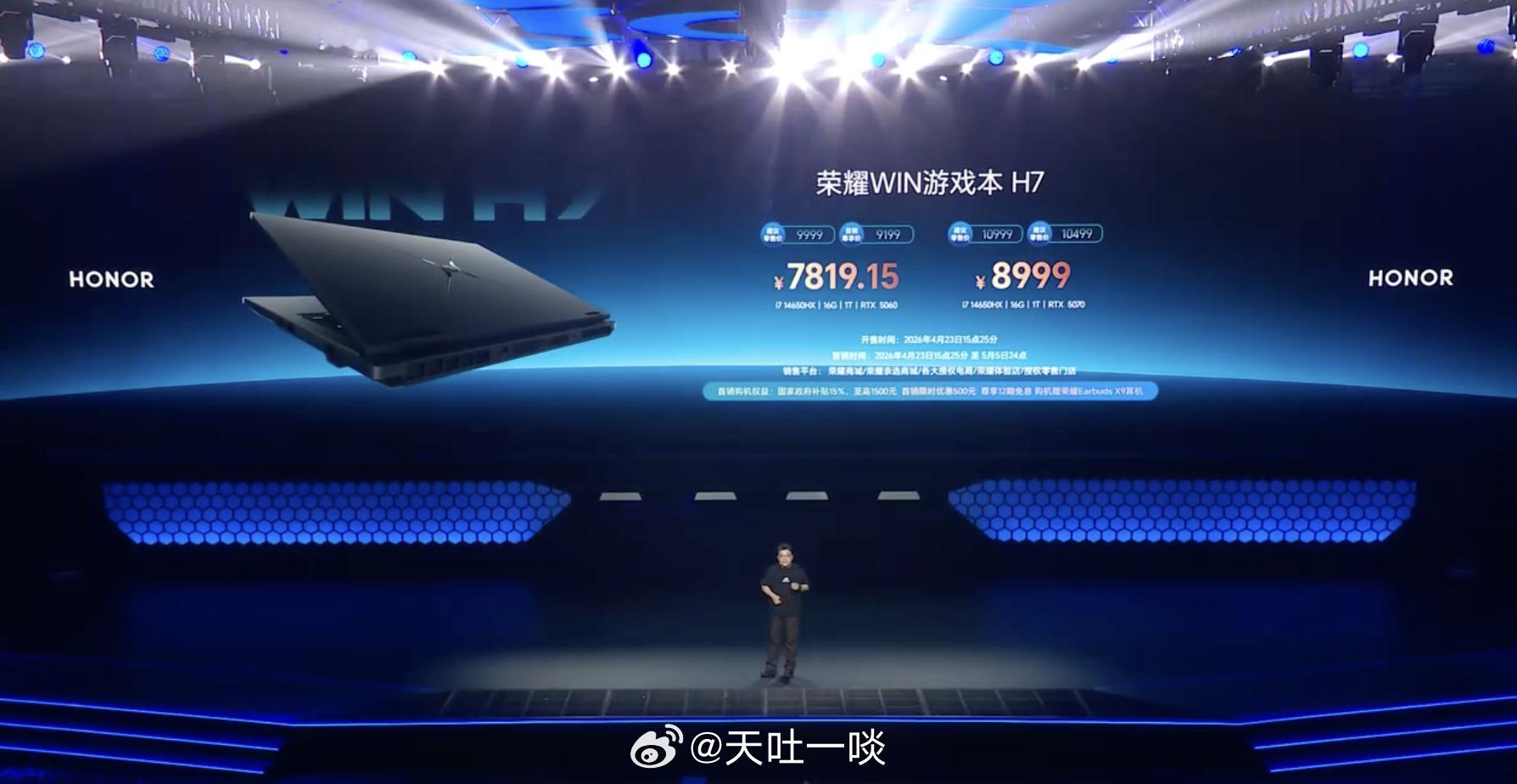 荣耀WIN游戏本暨全场景新品的价格出来了:WIN游戏本H9国补后售价9999元