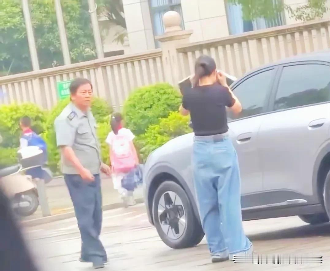 事情的起因再简单不过:女司机开车到小学门口接孩子,想临时停车就近等候,却遭到了学校隔壁公司保安的驱离。本身校园周边本就属于交通敏感区域,随意停车确实不合规,保安上前制止、劝离,本是分内之事,哪怕双方意见不合,好好沟通、讲明规矩,完全能和平收场。