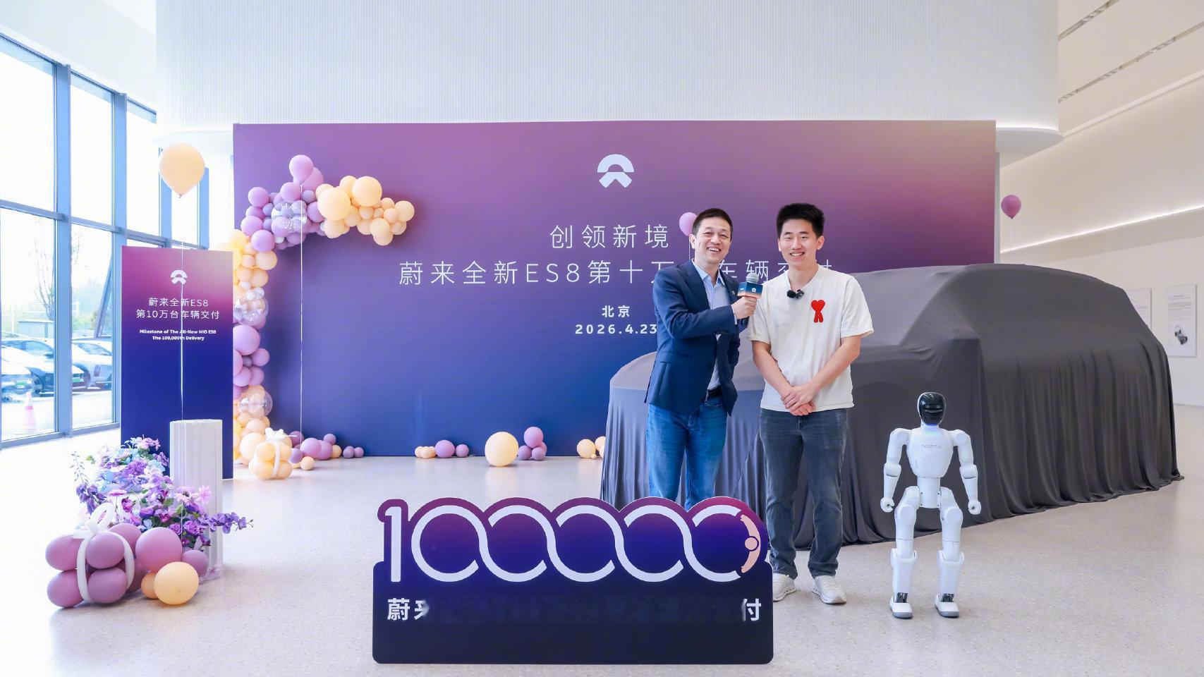 1台车7个月狂揽400亿 4月23日,官方微博宣布,全新ES8自2025年9月21日开启交付以来,历时仅7个月交付达成十万台。这个交付速度在40万以上车型中尚无先例,也创下了大三排SUV最快破十万的纪录。换算下来,仅凭这一款车型,蔚来7个月就收获超400亿销售额。