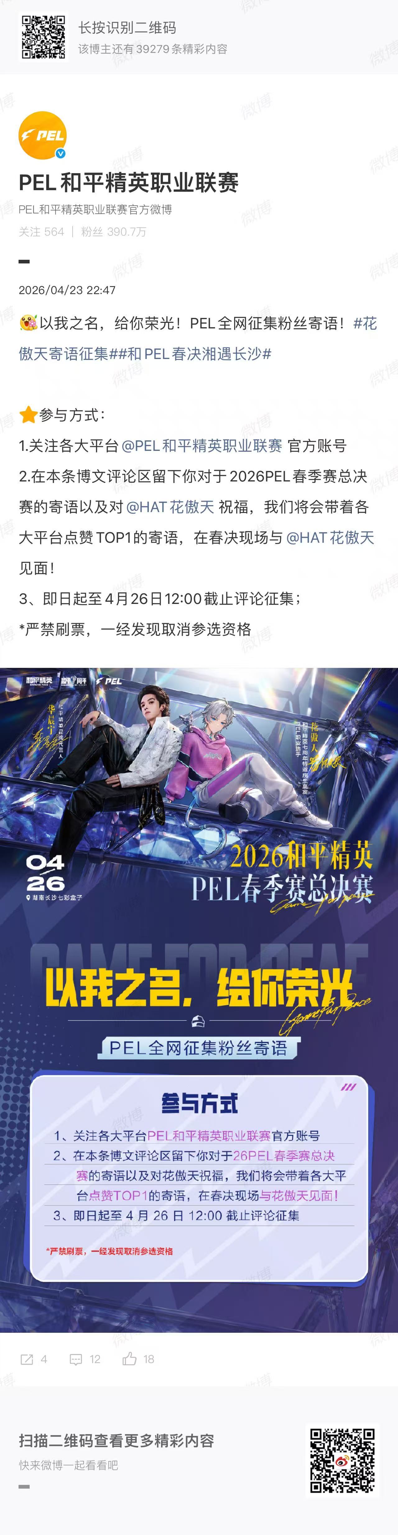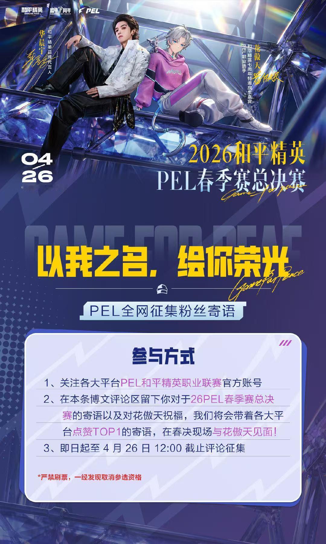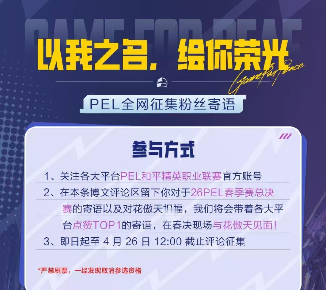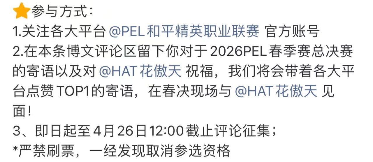 花傲天寄语征集 期待花傲天在PEL春决的舞台上大放异彩,也祝所有选手都能打出自己的风采,拿下属于自己的荣耀!