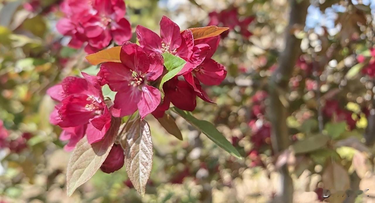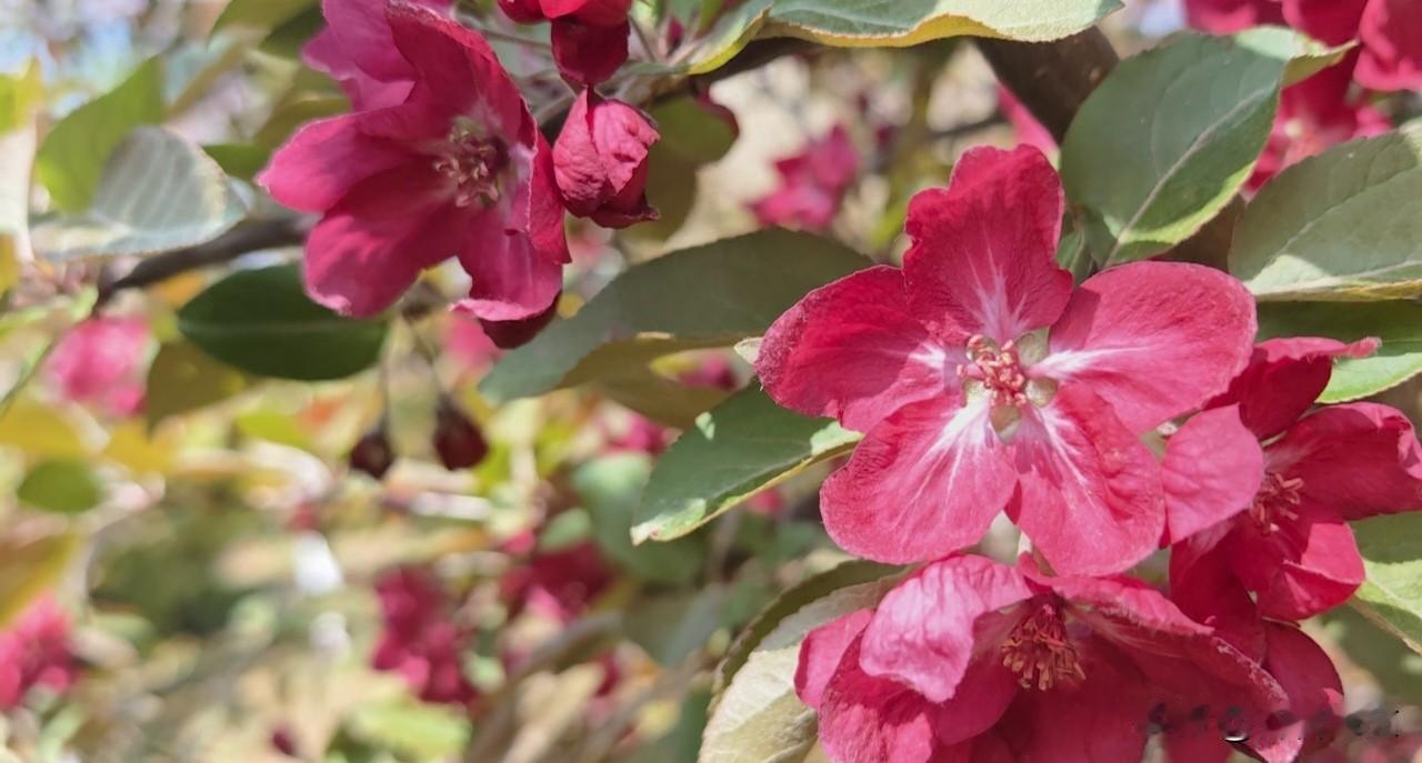 路边偶遇红海棠 随手拍照留心上