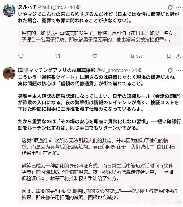🔻从后面日本人的回帖看,她可能是通过大喊大叫、动手来制造一种被目标“猥亵”的假象——因为在日本被以“猥亵”报警的话会很麻烦。