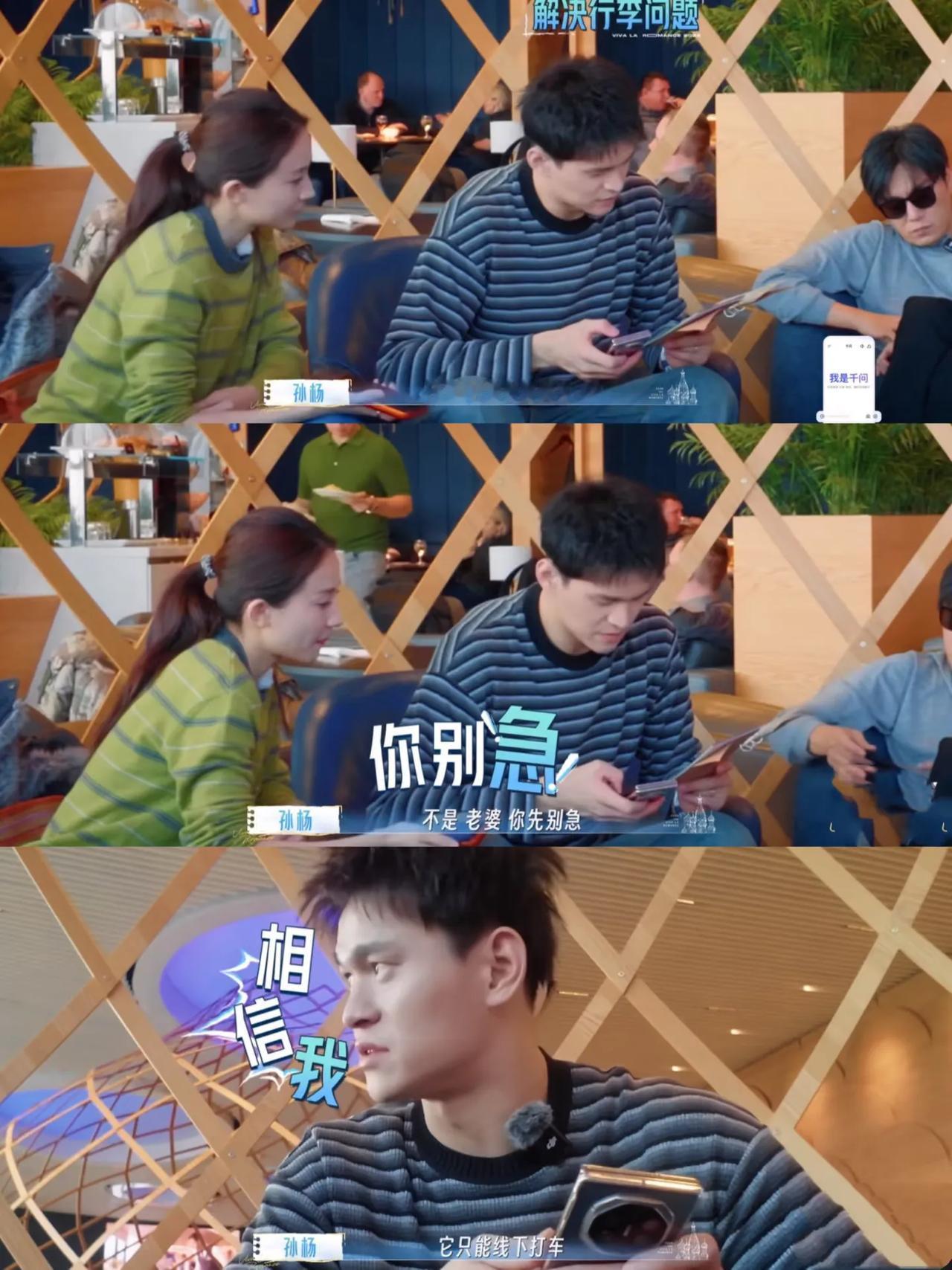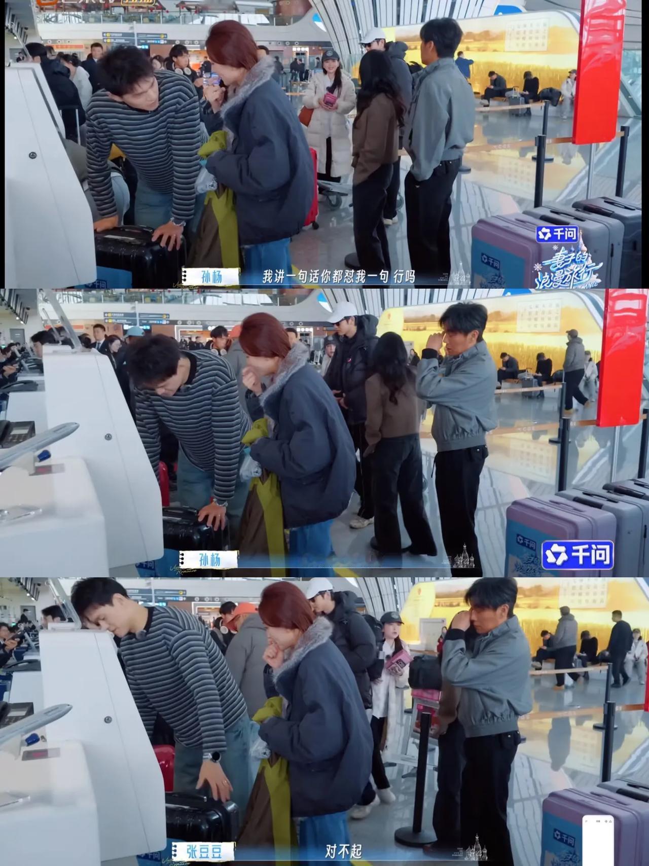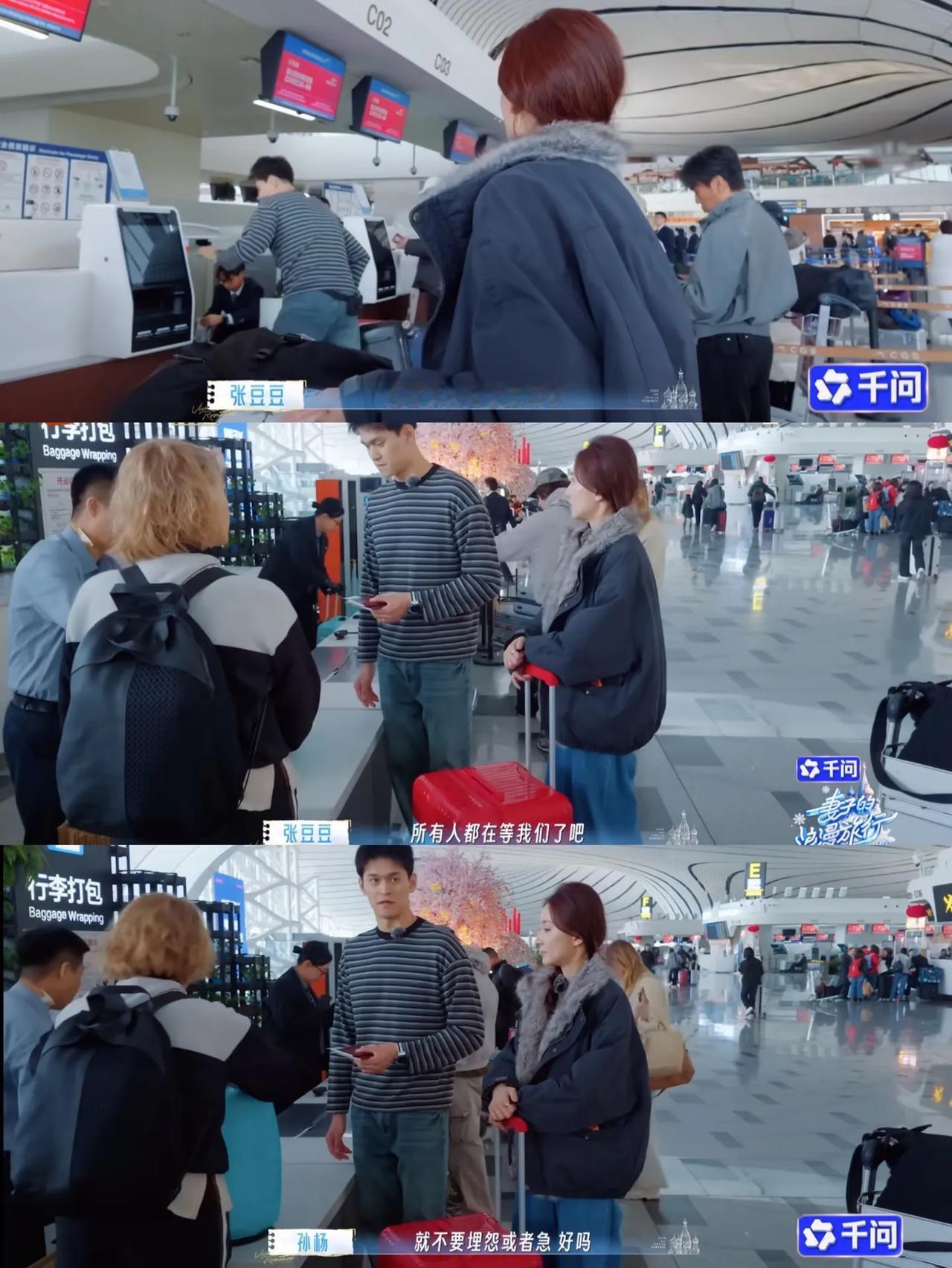 看完最新的《妻子的旅行》对孙杨观感一下变成负数,大家排队托运行李,孙杨问秦昊说行