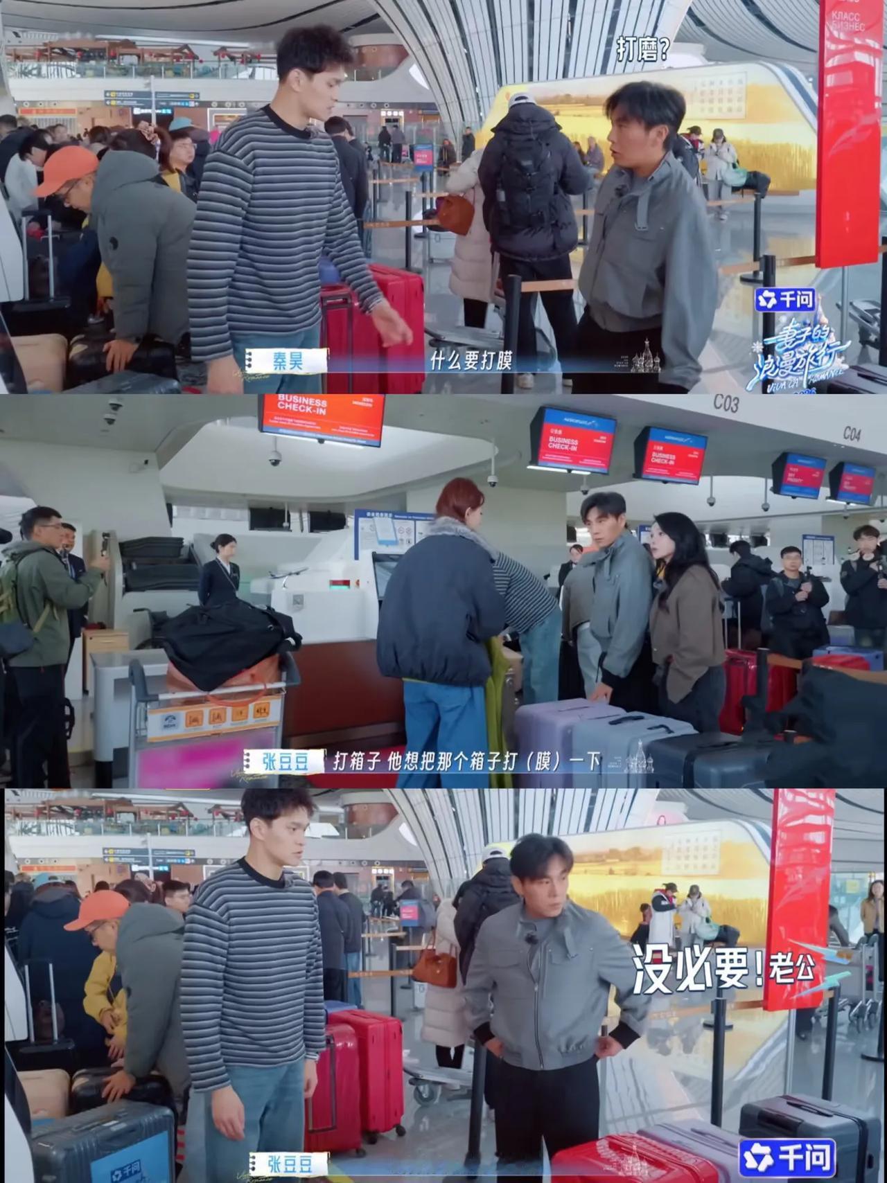 看完最新的《妻子的旅行》对孙杨观感一下变成负数,大家排队托运行李,孙杨问秦昊说行李箱包膜吗,怕行李箱摔坏,秦昊拒绝了,然后张豆豆建议那就不用打膜了。