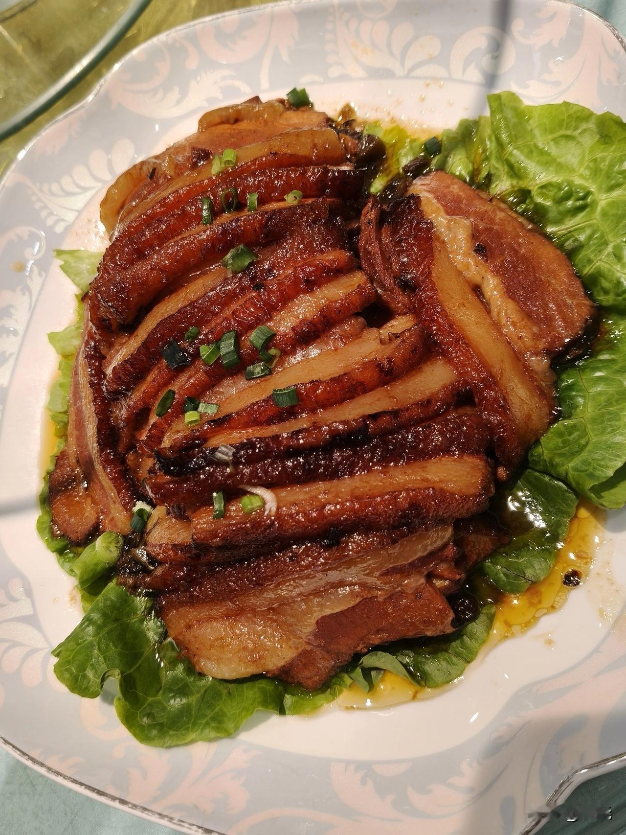 我吃了一块肥瘦相间的梅菜扣肉,那肥肉入口即化;还吃了一块烤羊排,两勺宫保鸡丁。