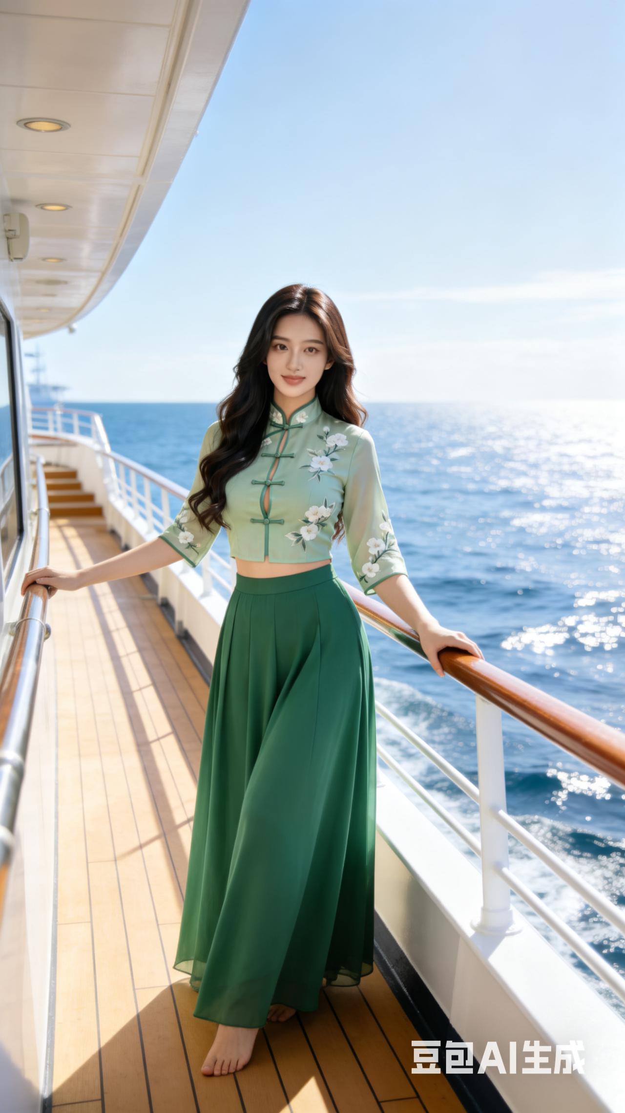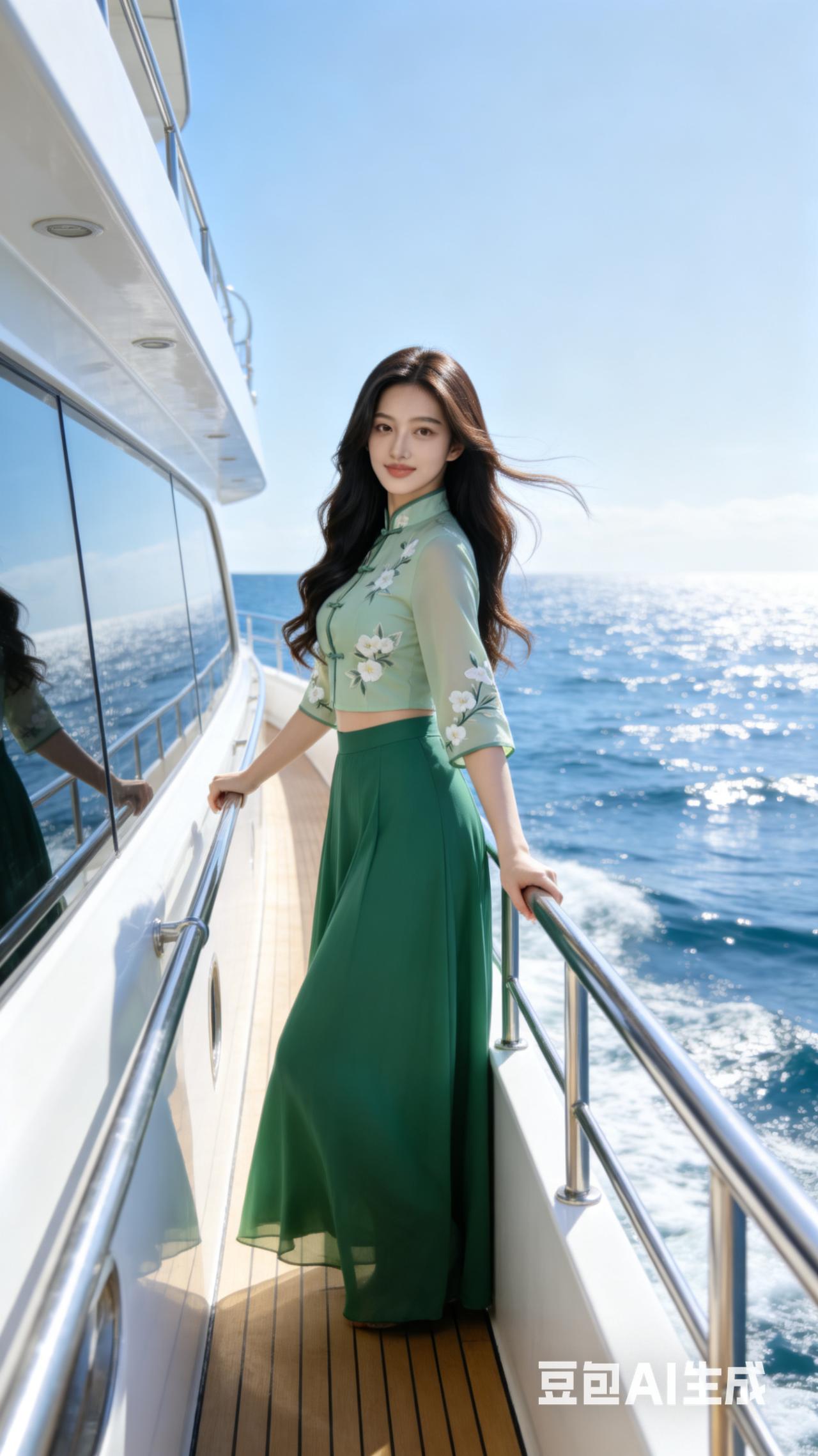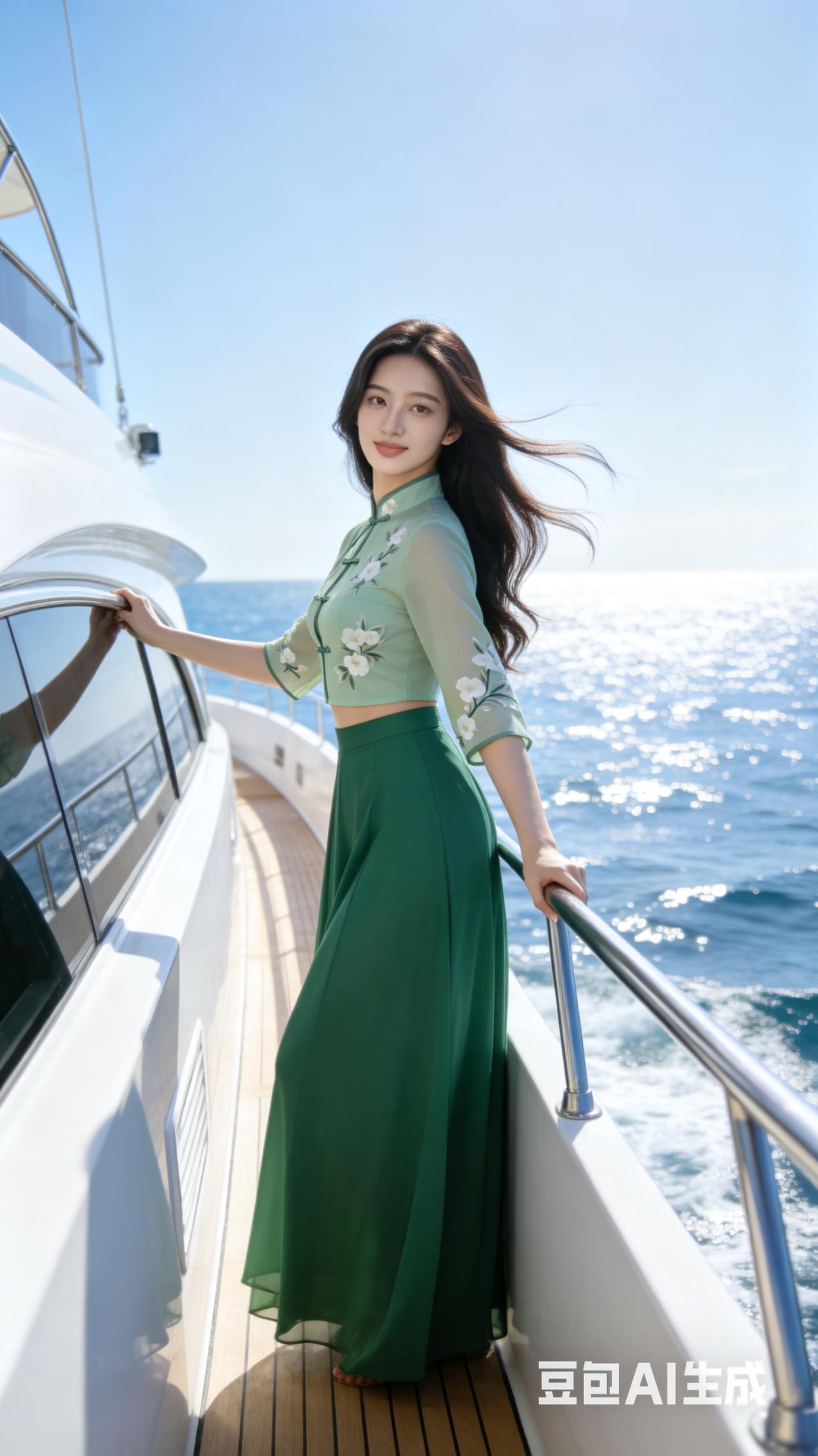 海风轻拂,碧波荡漾,优雅旗袍,尽显东方韵味。