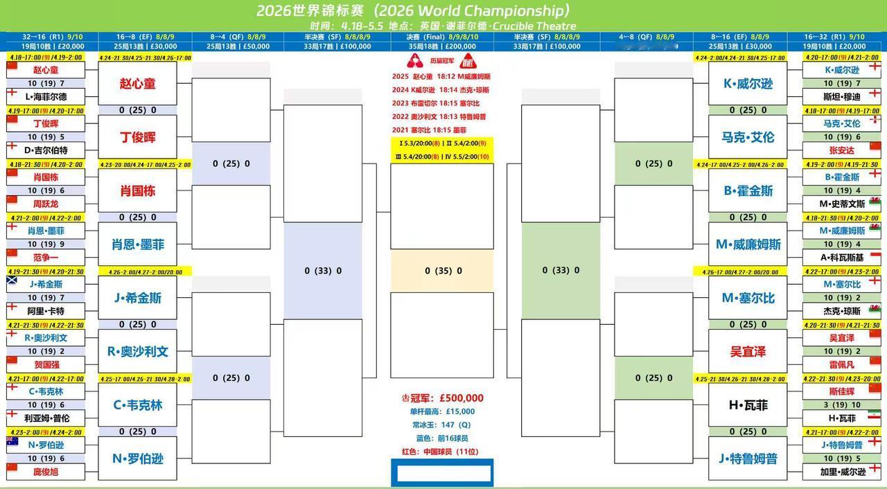 今天晚上9点半,重磅对决丁俊晖VS赵心童,中国新老球王能否顺利的交接呢?另外肖国栋在晚上5点,和明天凌晨2点和墨菲继续两个阶段的比赛,目前肖国栋2-6落后,能否完成大逆转。
